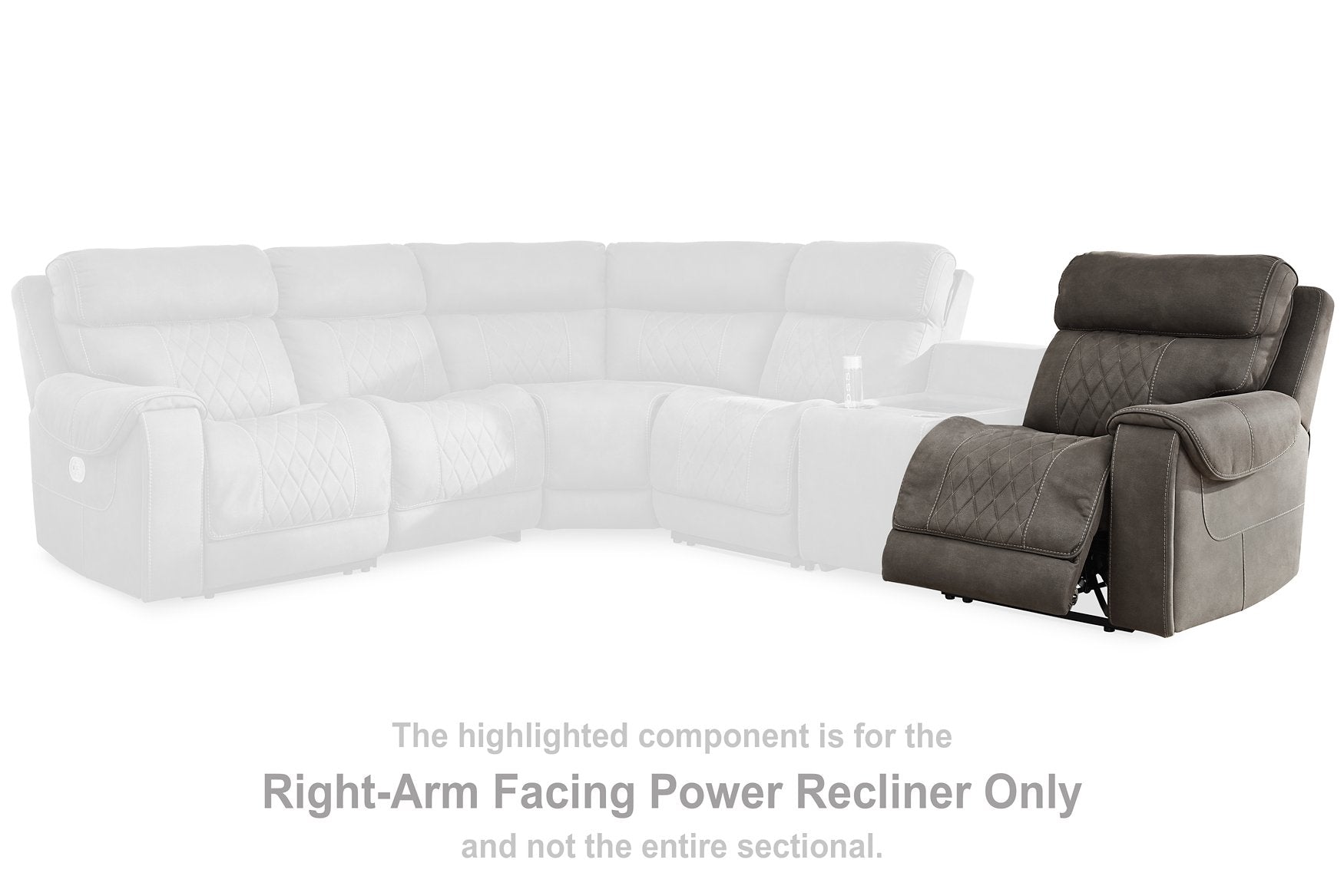 - ONLY AVAILABLE AS PICTURED. Includes 6 pieces: left-arm facing power recliner, power armless recliner, armless chair, wedge, console and right-arm facing power recliner