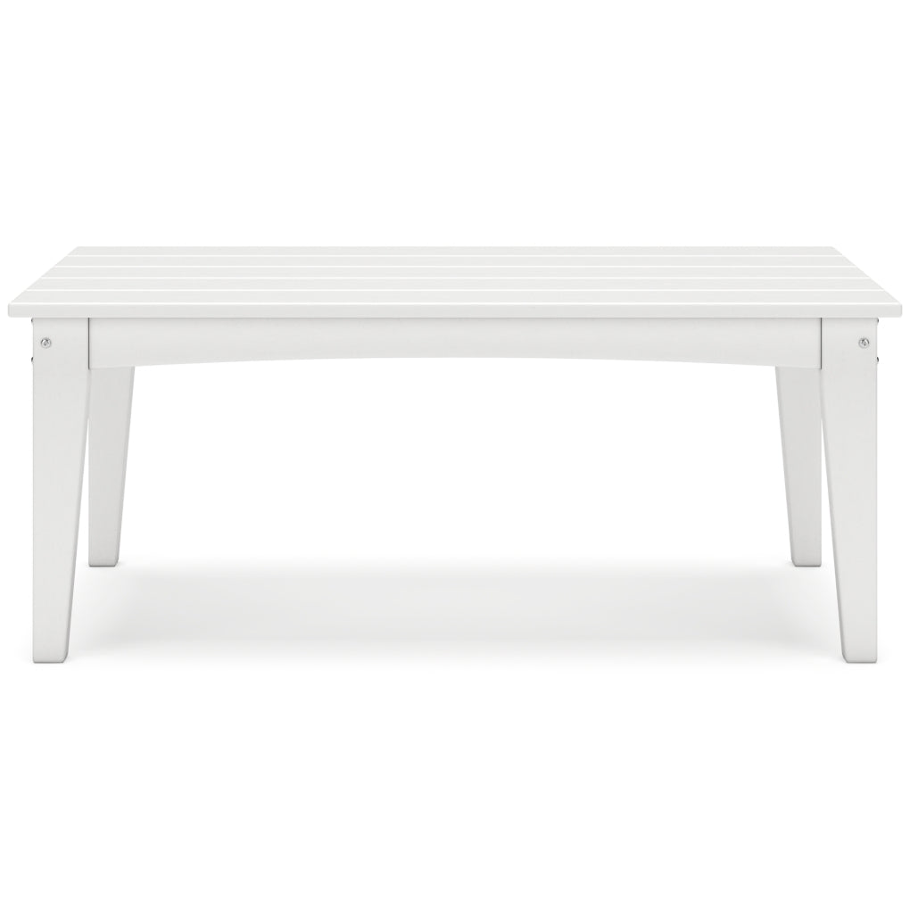 Drift into outdoor entertainment bliss with this coffee table. Dressed in a bright white for a fresh feel, it weathers sunny summer days and cozy winter nights with durable MEGA-TUFF¨ HDPE material. When it comes to form and function, the table's rain-shedding slatted design simply goes with the flow. Use it to hold outdoor decor, drinks or snacks.