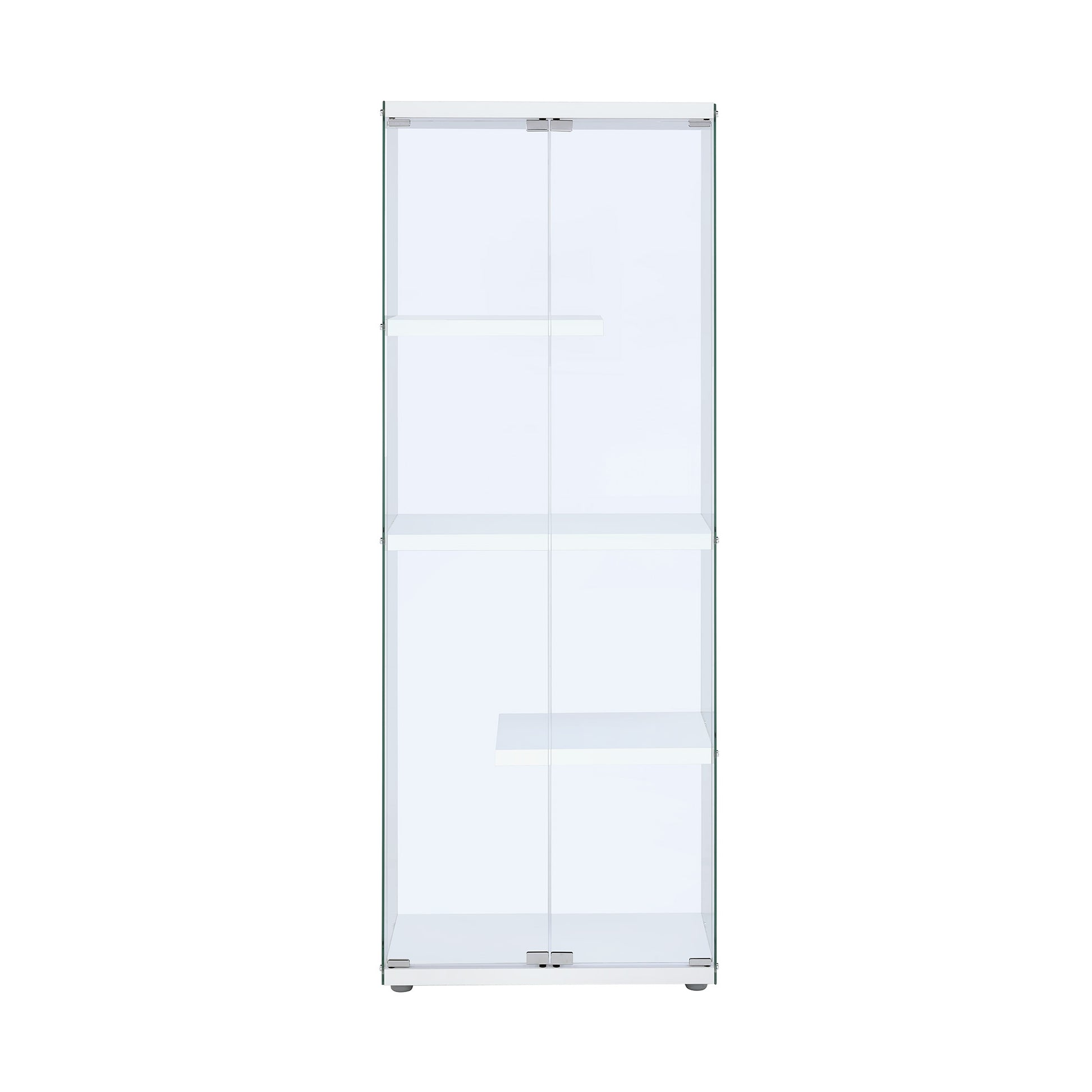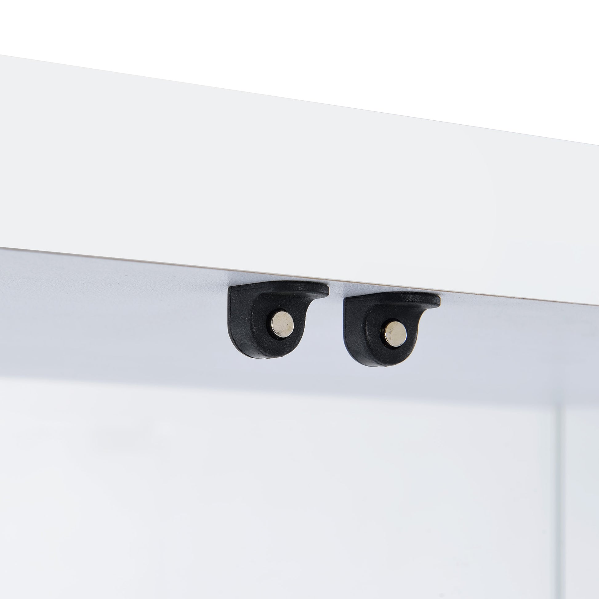 The Ice Display Cabinet is just what you need to display all your glamorous décor! This display cabinet breaks up traditional shelving with two shelves not expanding across the entire case; which means you can really play up your decor no matter the height. The doors are magnetic allowing you to easily access the cabinet. This contemporary design will look great in your home and will be a staple for years to come!