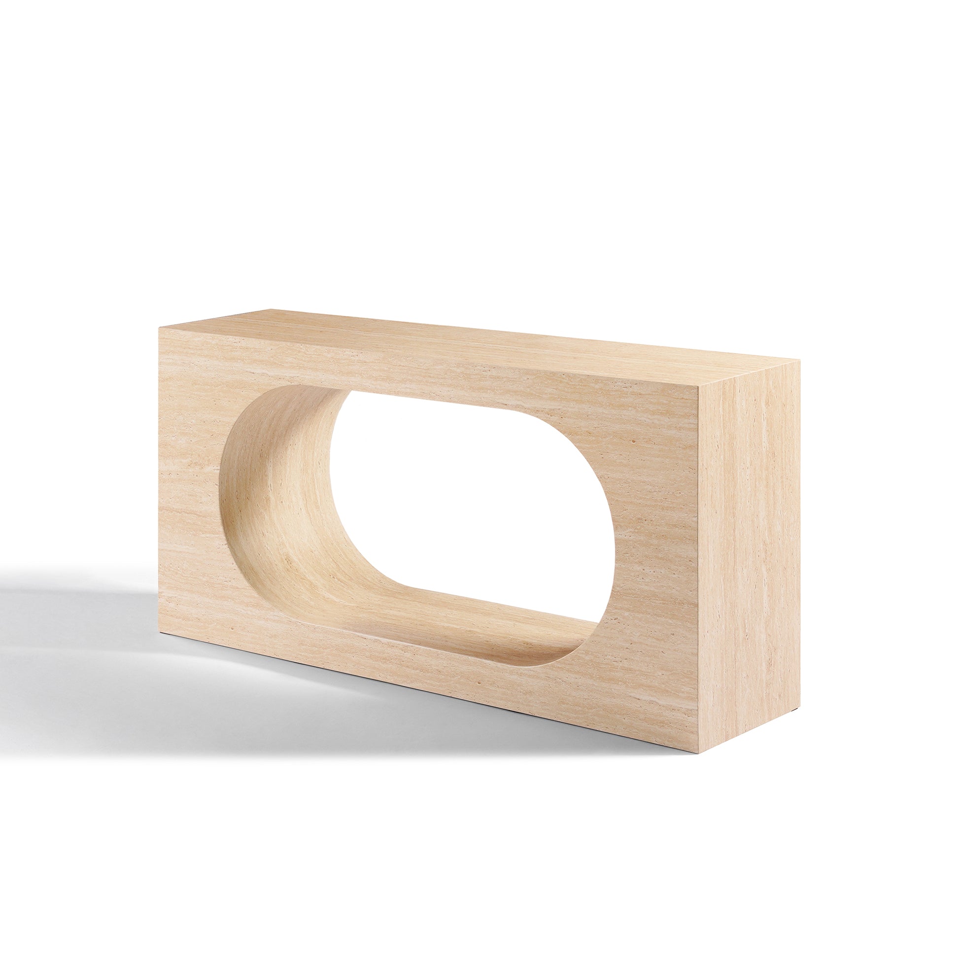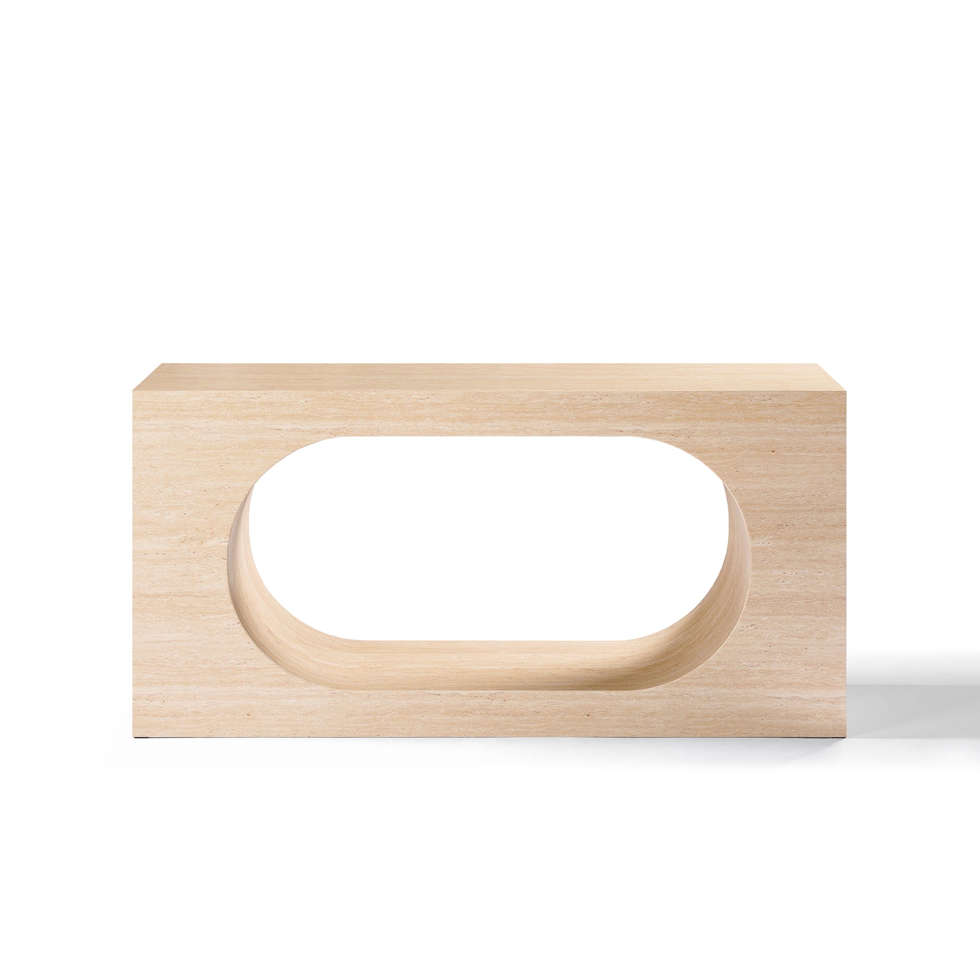 Sculpted with bold geometry, the Inca Collection Travertine Stone Console Table becomes a striking centerpiece in any room. Its hollow center creates a sense of depth and openness, while the smooth stone surface adds refined elegance. Perfect for hallways, living areas, or entryways, this console blends artistic design with enduring strength.