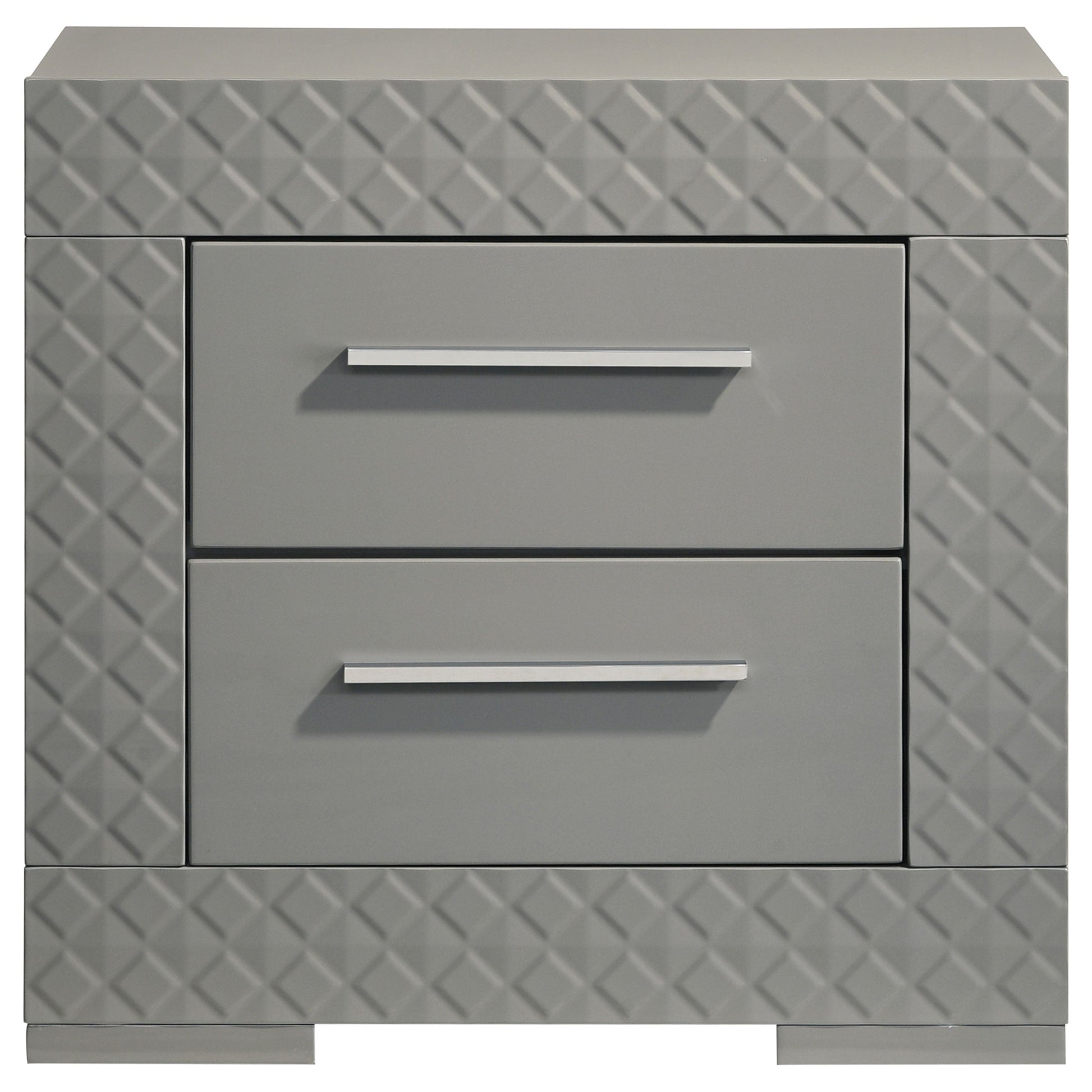 Add a touch of sophistication to your bedroom with this elegant nightstand. Featuring a high gloss finish, it reflects a modern Italian style with a clean, minimalist design. The nightstand includes two spacious drawers, perfect for keeping your bedside essentials organized and within reach. The felt-lined top drawers provide a soft surface for delicate items, while the robust construction ensures lasting durability. This nightstand is a chic addition that complements the contemporary aesthetic of your space.