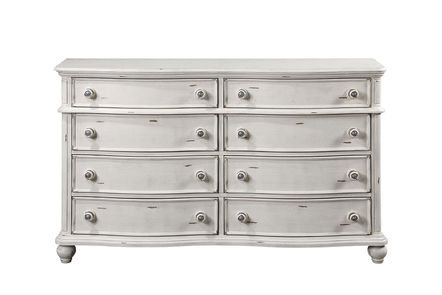 Perfect for cozying up a space, this Jaqueline bed set sets the scene for an inviting bedroom. The bed features a majestic deep button tufted headboard and a low-profile storage footboard. The matching pieces offer plenty of deep storage for all your needs. English dovetail drawer fronts and backs provide strong construction for everyday use. The gorgeous traditional design of this collection showcases a sturdy wooden construction in an antique white finish.