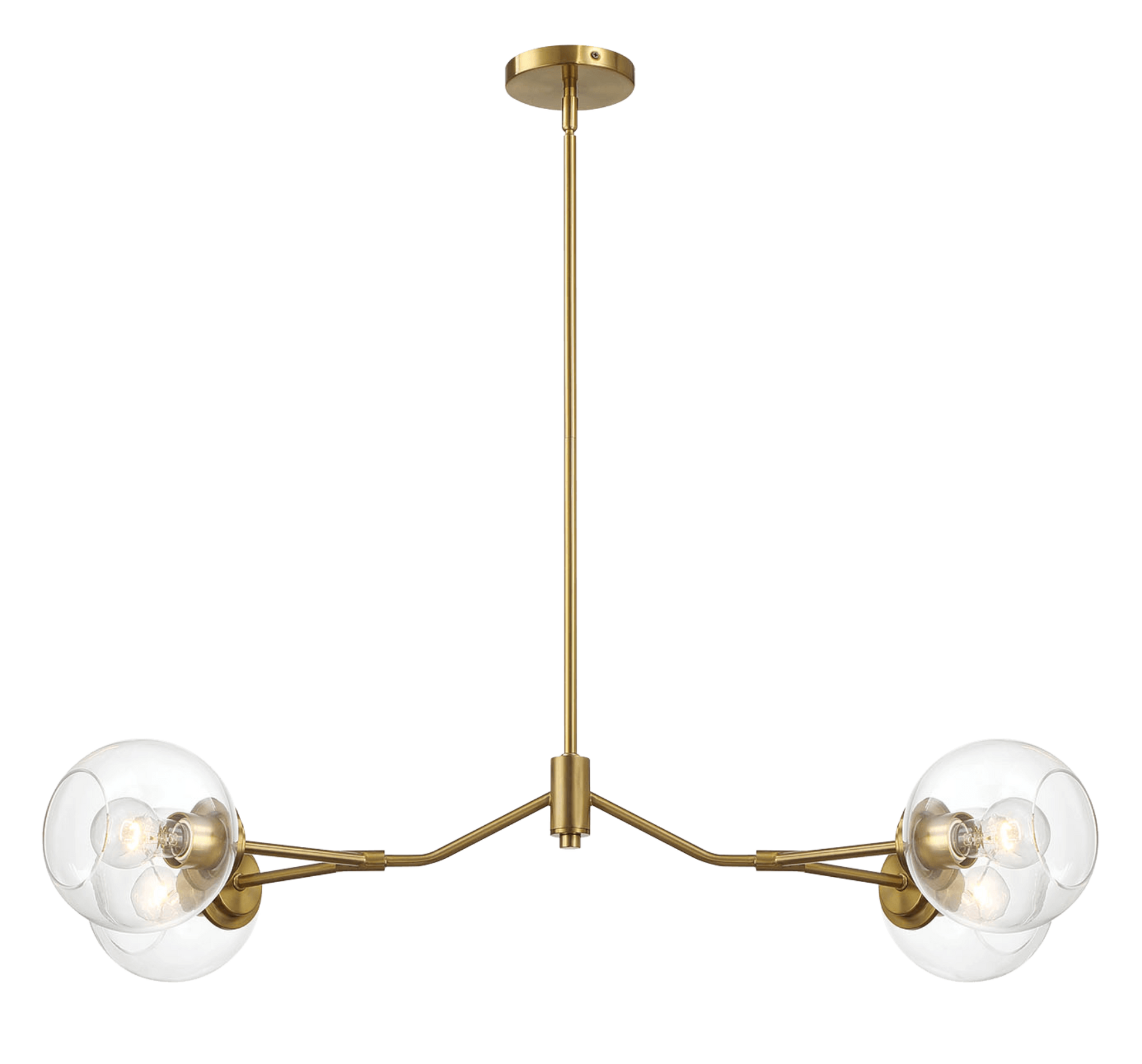 This modern farmhouse chandelier adds a touch of elegance and charm to any kitchen or dining room. With clear glass and four lights, it provides ample lighting for any occasion. Its sleek design and size of 36"L × 20"W × 7.25"H make it a perfect fit for any space. Bring beauty and warmth into your home with this stunning fixture! Transform your kitchen or dining room into an elegant and charming space with the addition of our modern farmhouse chandelier. Boasting four lights and clear glass, this fixture provides ample lighting for any occasion. The sleek design and perfect size of 36"L × 20"W × 7.25"H make it an ideal fit for any room in your home. Bring a sense of beauty and warmth into your living space with this stunning chandelier.