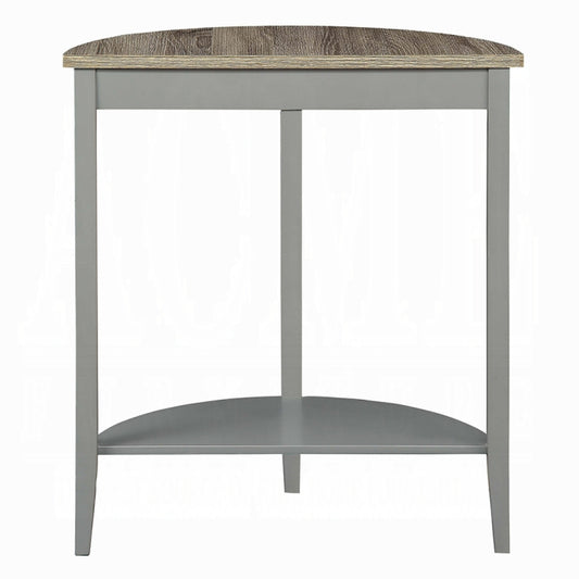 Give a touch of Transitional modish scheme to your home with this Justino console table. With its simple design, you can place it beside your entry doorway to add a welcoming sensation. Featuring a lower display shelf & Wood grain pattern top this piece furthermore become a simple solution for storage. Bring home this console table to amaze your guests. With its elegant gray oak & gray finish, it will certainly complement any home Decor.
