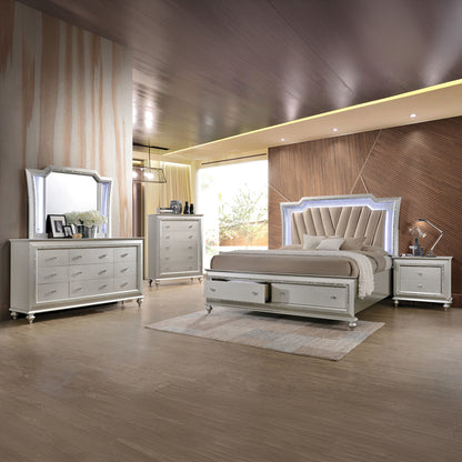The Kaitlyn dresser provides a commanding presence in any room. Crafted with a transitional look that is an ideal addition to any bedroom, the dresser is accented with textured front and a crystal-like sparkling trim. Its crystal-like trimming creates dazzling glow for your master bedroom. Multiple storage drawers allow you to keep your sleeping area nicely neat.