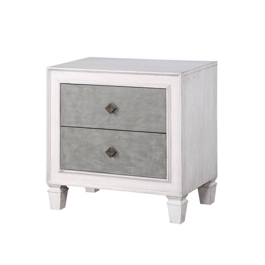 The Katia collection is perfect for creating a modern rustic or farmhouse aesthetic. Merging old and new design features and finishes. The bed features a channel-tufted headboard and footboard in gray linen that pops against the white frame. The case goods fronts are finished in a rustic gray and offer plenty of storage with their ample drawers to fit all your belongings and keep your bedroom organized.