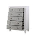 The Katia collection is perfect for creating a modern rustic or farmhouse aesthetic. Merging old and new design features and finishes. The bed features a channel-tufted headboard and footboard in gray linen that pops against the white frame. The case goods fronts are finished in a rustic gray and offer plenty of storage with their ample drawers to fit all your belongings and keep your bedroom organized.