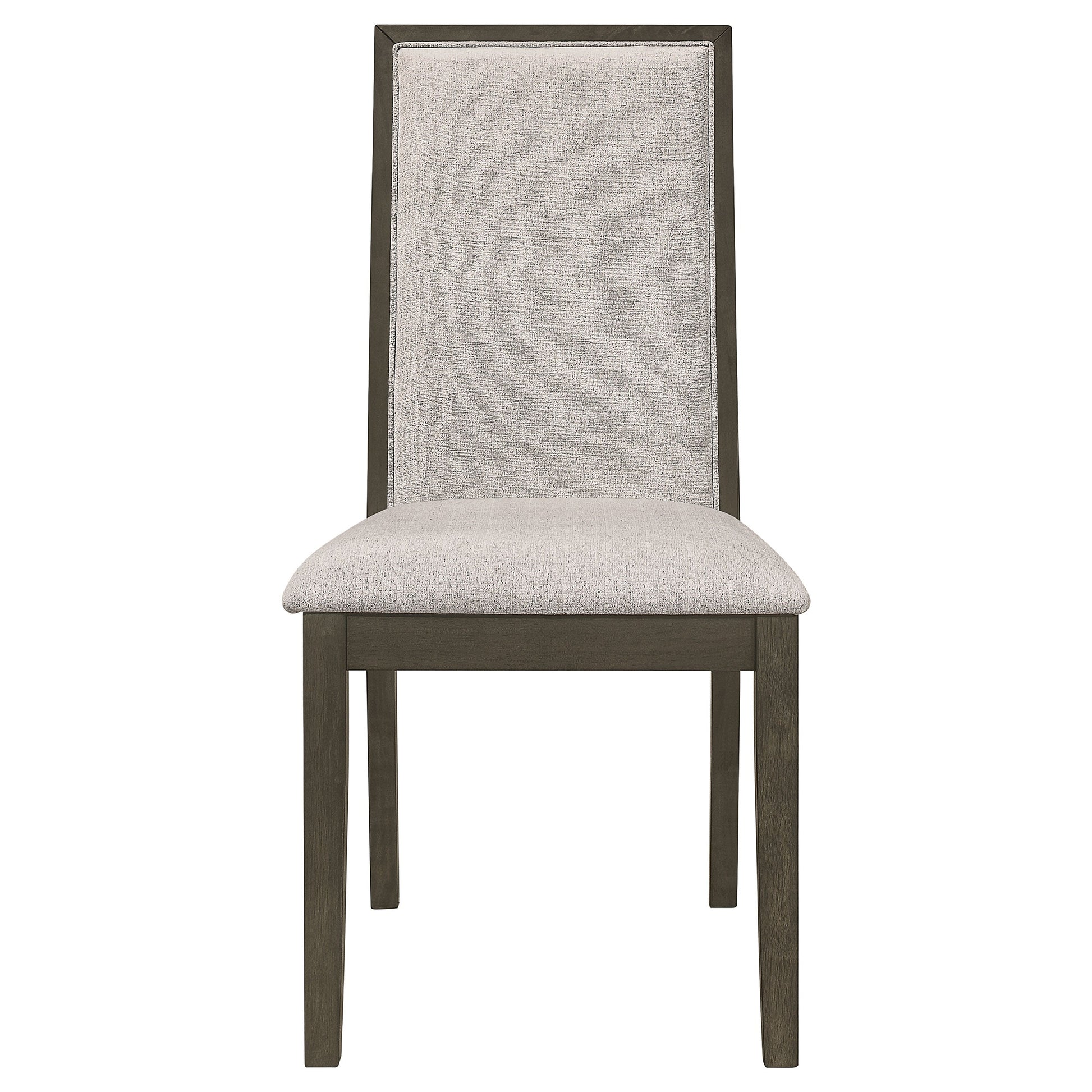 Experience luxurious comfort while dining with our beige upholstered side chairs. The chic dark grey finish perfectly complements the subtlety and elegance of our transitional dining set. These chairs not only offer a stylish seating option but also provide a cozy and inviting atmosphere. Elevate your dining experience with these exquisite side chairs that effortlessly blend comfort and sophistication.