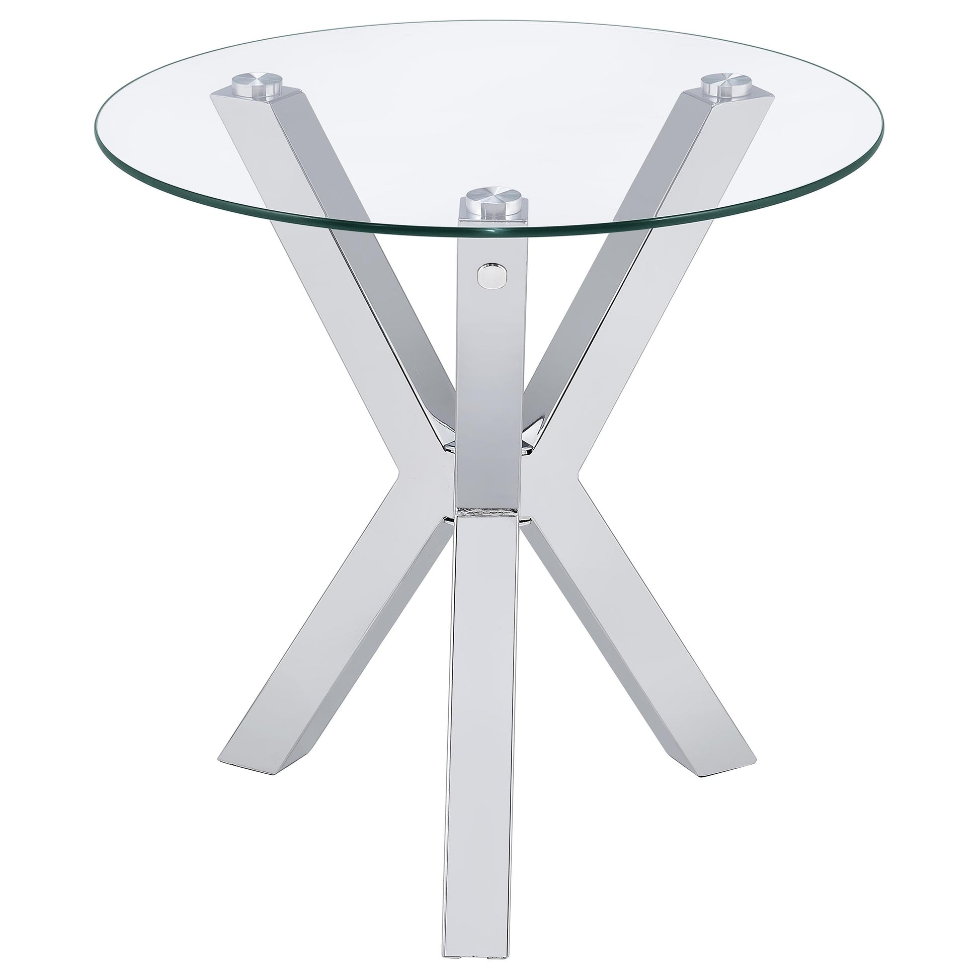 This sleek side table brings modern refinement to your living room, effortlessly doubling as an accent table, occasional table, or utility table. Its round tempered glass top rests elegantly on an electroplated chrome frame crafted from heavy gauge steel, creating a minimalist silhouette that complements various décor styles. Designed to enhance both form and function, this versatile piece becomes a subtle yet striking focal point in any contemporary interior.