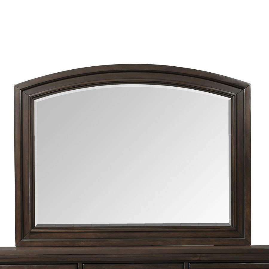 This Kingston dresser mirror features beveled glass and a rich walnut finish. A refined and timeless piece designed to add a touch of sophistication to any room features a sleek rectangular frame with smooth edges and a warm, rich finish, providing both functionality and aesthetic appeal to your space.