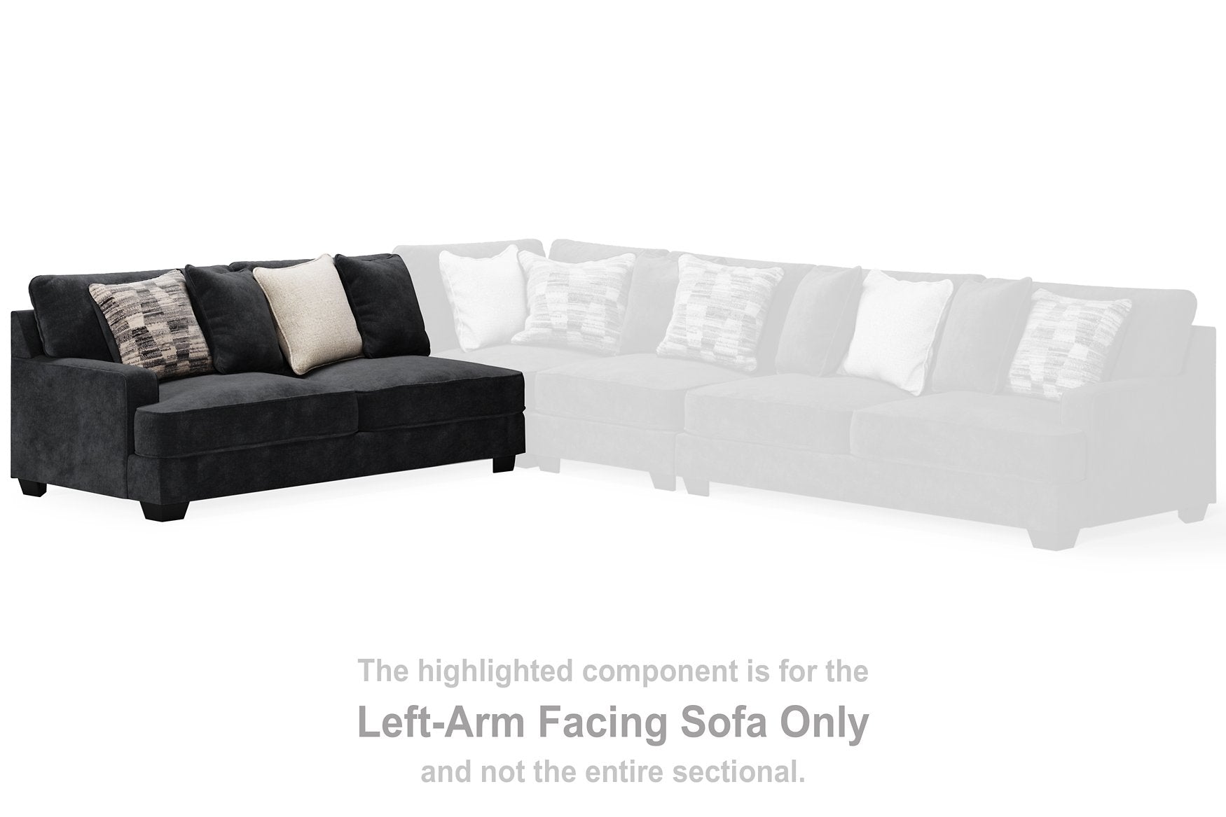 A match made in heaven, this sectional marries a cool, contemporary look and a decadently soft, plush microfiber feel. This irresistibly comfortable union is love at first touch at the end of a long day, or anytime you're ready to get serious about relaxing. Say I do to big-time comfort and style flanked by neatly finessed track arms in a clean, straightforward design. A medley of pillows in cream, black and gray blends effortlessly with any setting.| Full Dimension | 170W x 131D x 40H |