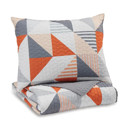 For an ultra-modern look that's pleasing from every angle, this reversible coverlet set is beautifully on point. Solid gray underside is a cool contrast to the top's vibrant geometry. Quilted material infuses a cozy texture.
