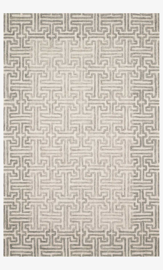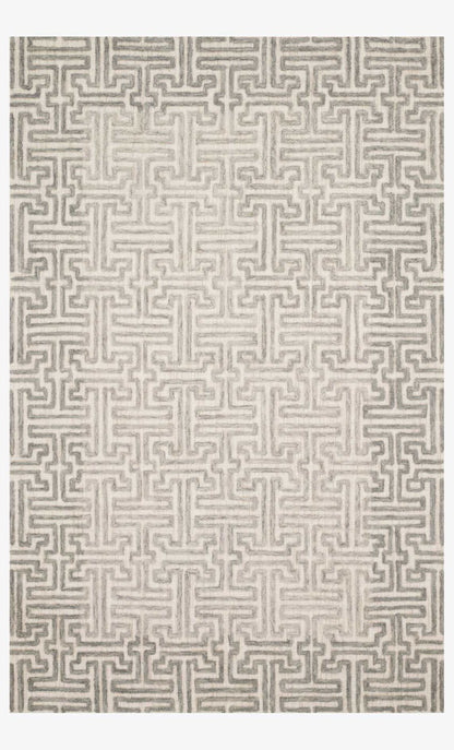Hand-tufted by skilled artisans in India, the Ehren Collection has a neutral palette, which is offset by strong, yet textural geometric patterns creating a subtle, long-lasting rug made of 100% wool pile.