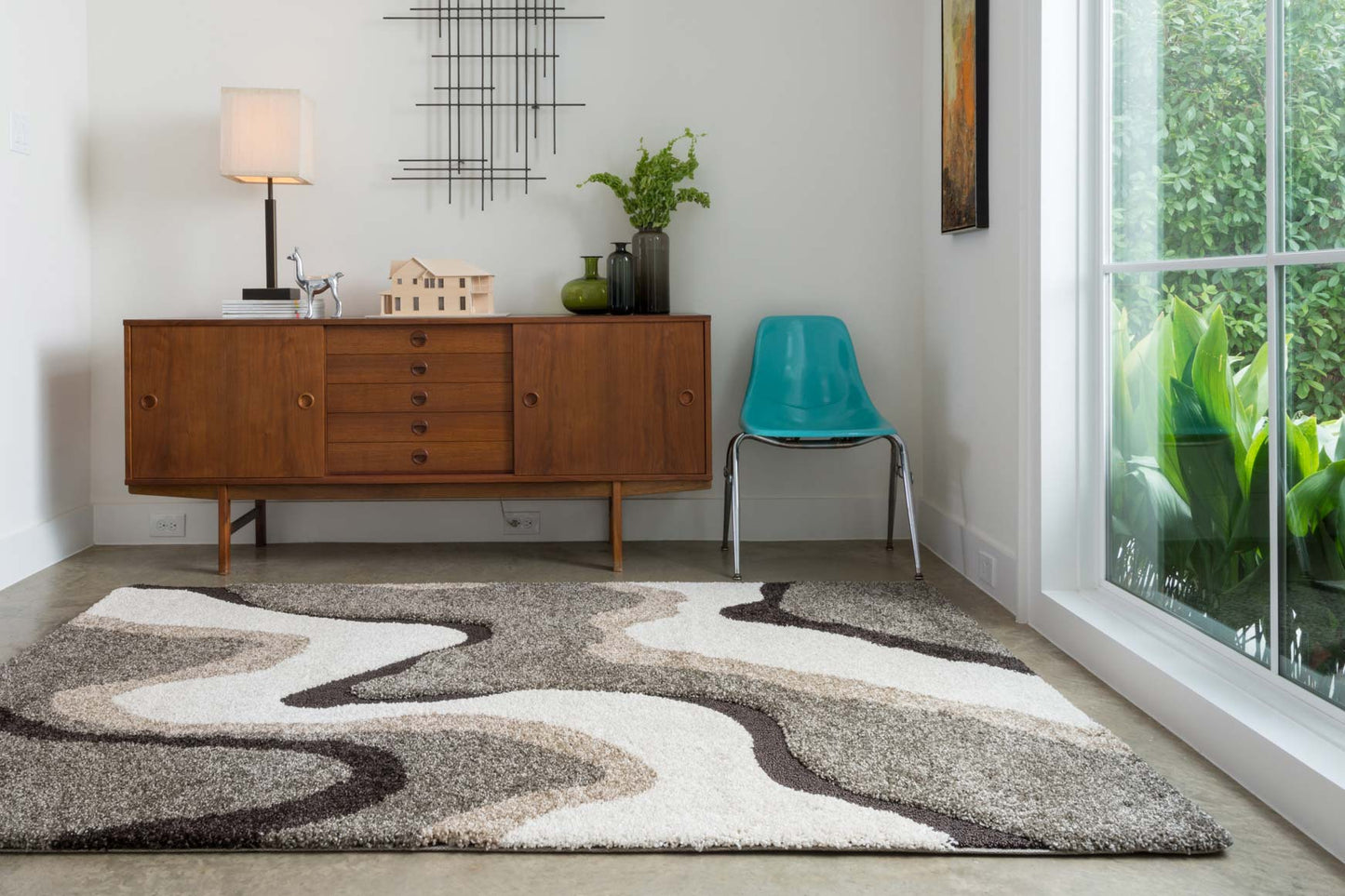 The Enchant Collection is a transitional power-loomed shag style collection that showcases a variety of neutral earth tone colors and over-scaled patterns. This new collection's transitional designs are elaborated with varying pile heights to create a high-low texture effect. This unique combination serves to create a stylishly sophisticated and luxurious look.