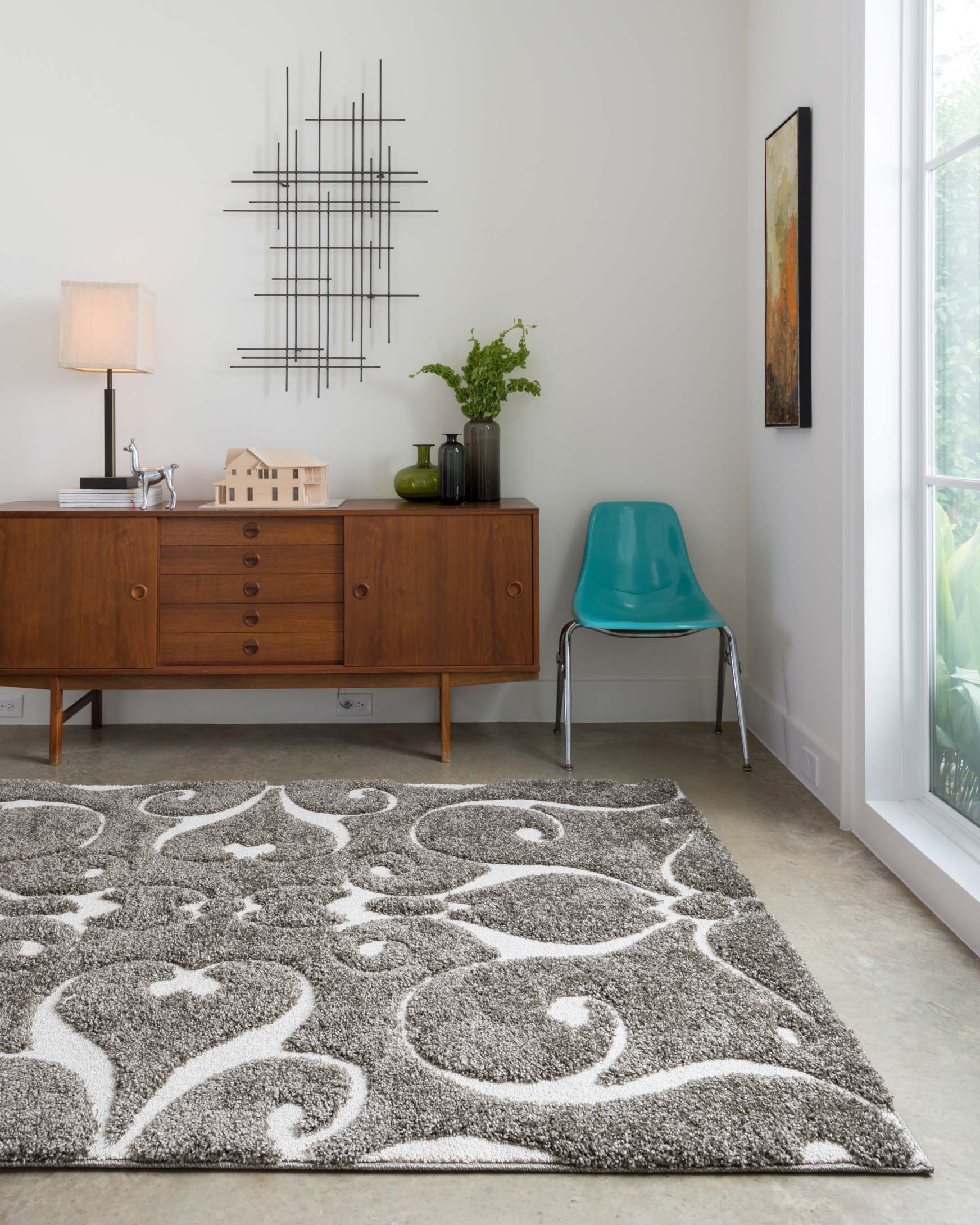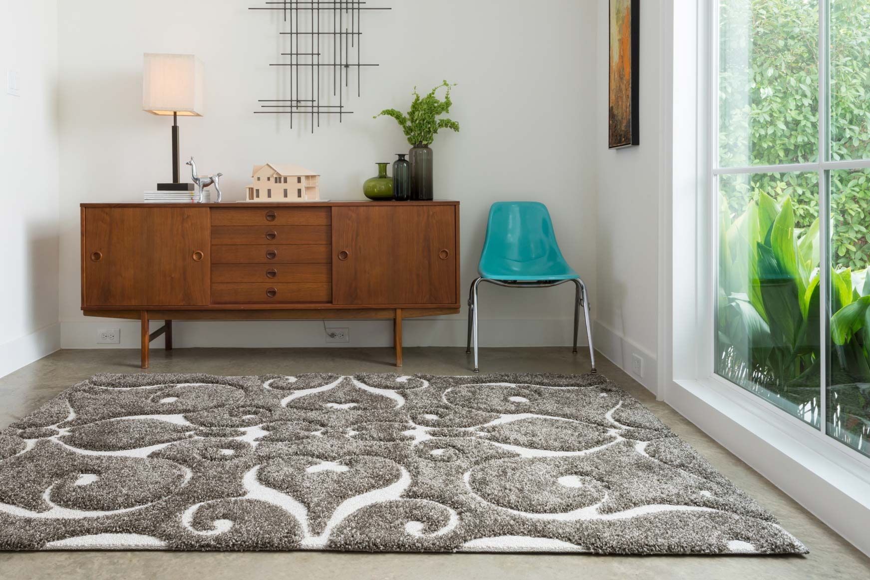 The Enchant Collection is a transitional power-loomed shag style collection that showcases a variety of neutral earth tone colors and over-scaled patterns. This new collection's transitional designs are elaborated with varying pile heights to create a high-low texture effect. This unique combination serves to create a stylishly sophisticated and luxurious look.