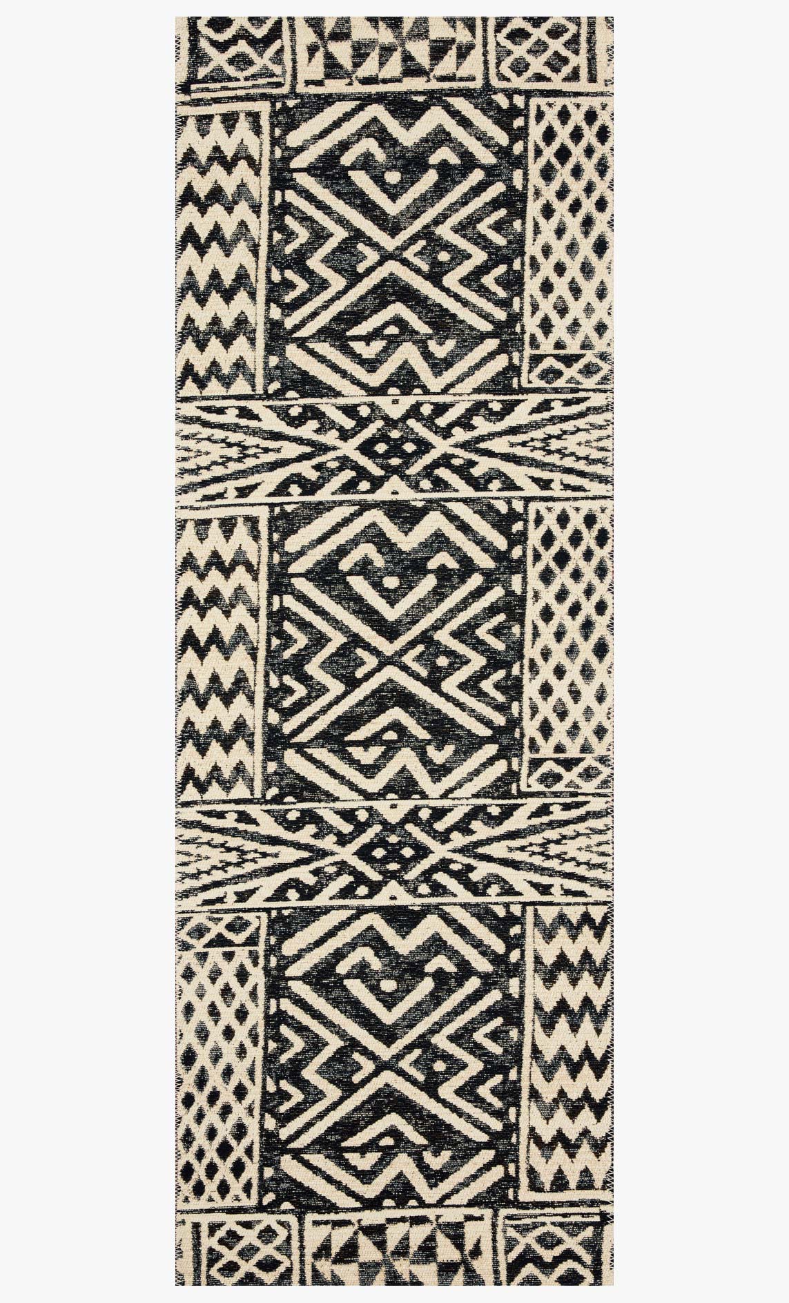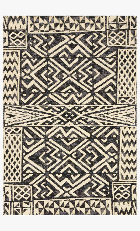 Power-loomed of polypropylene and polyester in Egypt, the Mika Collection is a spectacular display of abstract and tribal-inspired designs. The textured yarn adds beautiful dimension and creates a truly unique look that is long-lasting and durable for outdoor and indoor spaces. Each piece is accented with a blanket-stitch finish.