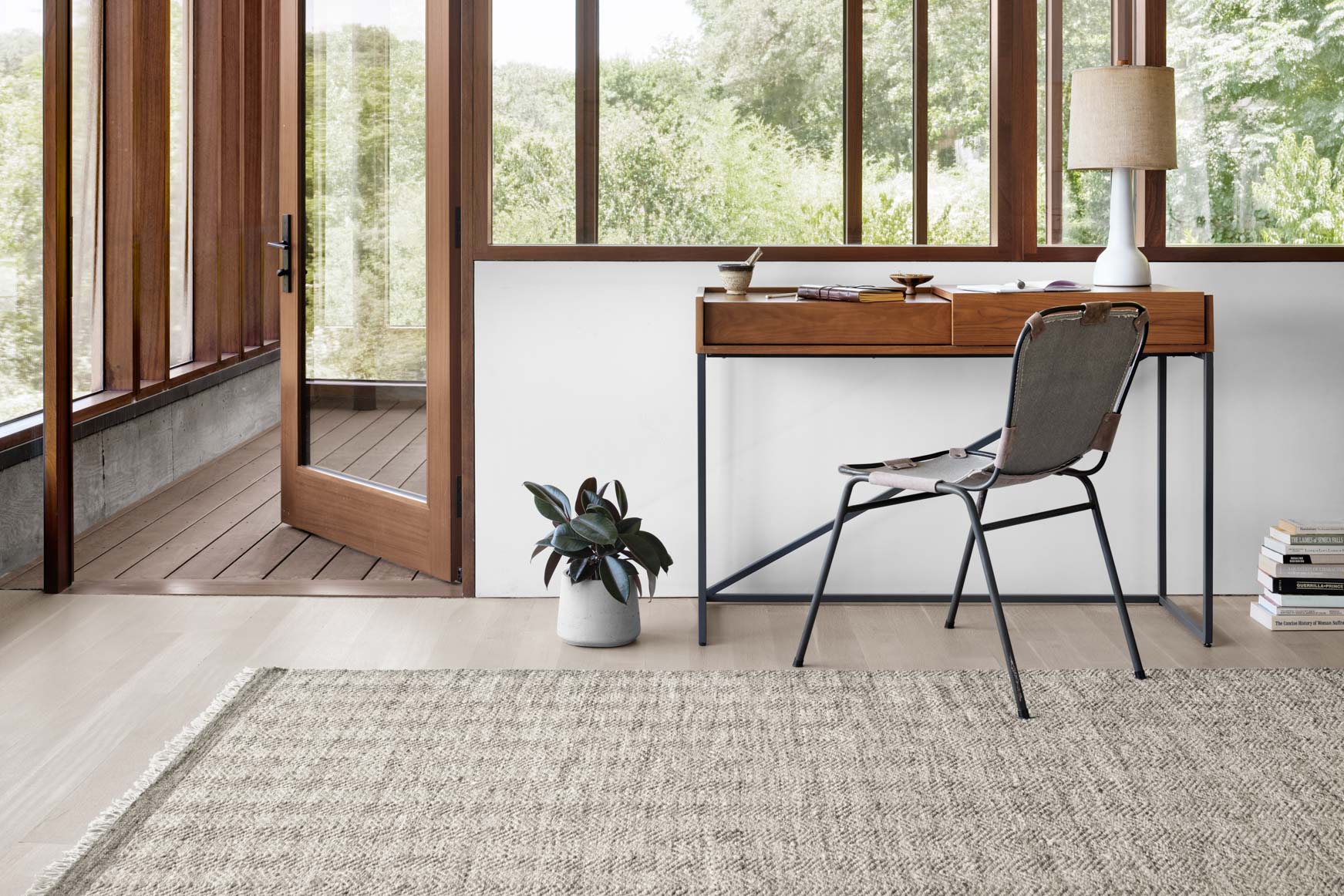 Hand-woven of jute, wool, and cotton in India, the Omen Collection is a timeless series. The subtle chevron waves add beautiful dimension and create a truly unique look that is long-lasting and durable.