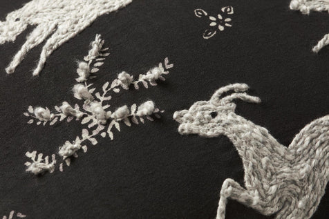 Transform your space with our Loloi Pillows PLL0027 Black/Ivory accent pillow featuring striking running animal designs. Elevate your home decor with this elegant and unique addition that will add a touch of sophistication and style. Perfect for adding texture and personality to any room.