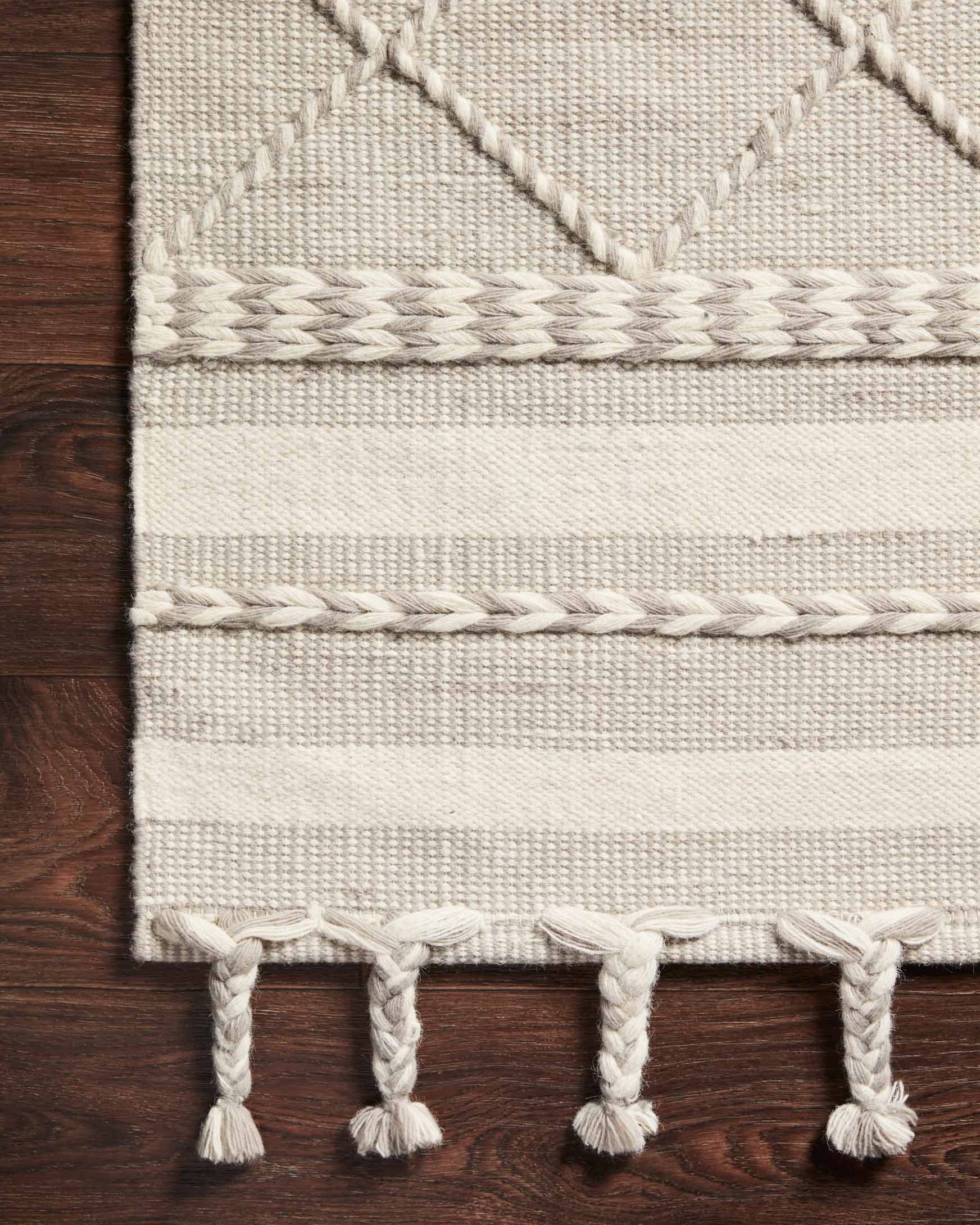 Hand-loomed of wool, cotton and other fibers in India, the Sawyer Collection features bold graphic designs. Textural, tonal, and timeless, Sawyer evokes a sense of unique sophistication. Plus, each piece is finished with a playful fringe.