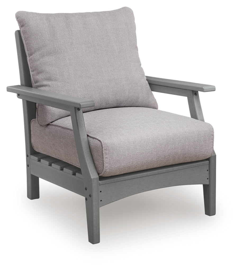 This outdoor lounge chair prioritizes versatile style and comfort, all while providing the durability you need alfresco. Crafted with a sturdy wood-look material in gray, it withstands the elements with ease. Cleanable and UV-resistant Nuvella¨ fabric rounds out the piece with added function.