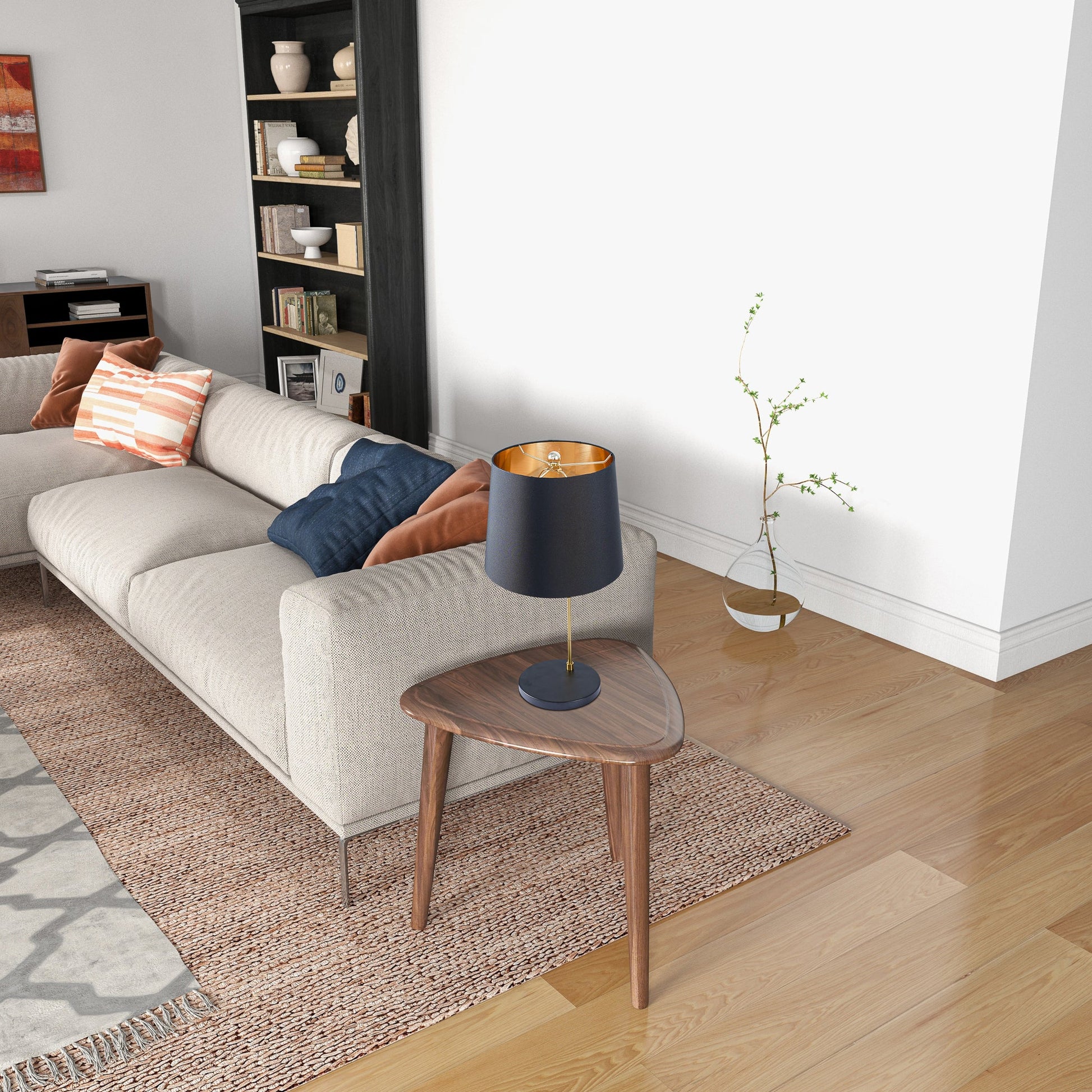 Elevate your home decor with this modern black and gold table lamp. Featuring a sleek black outer shade with a radiant gold interior, this lamp creates a warm and inviting ambiance. The sturdy metal base provides durability, while its compact design makes it perfect for nightstands, desks, or side tables. Add a touch of elegance and functionality to any room with this chic table lamp.
