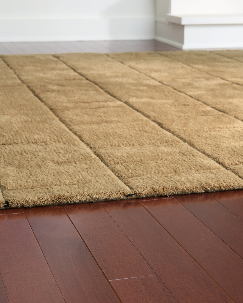 Reshape your space with warmth, color and character. Loaded with sumptuous texture, this area rug features a hand tufted geometric design in shades of golden brown. It's pure pleasure for the senses.