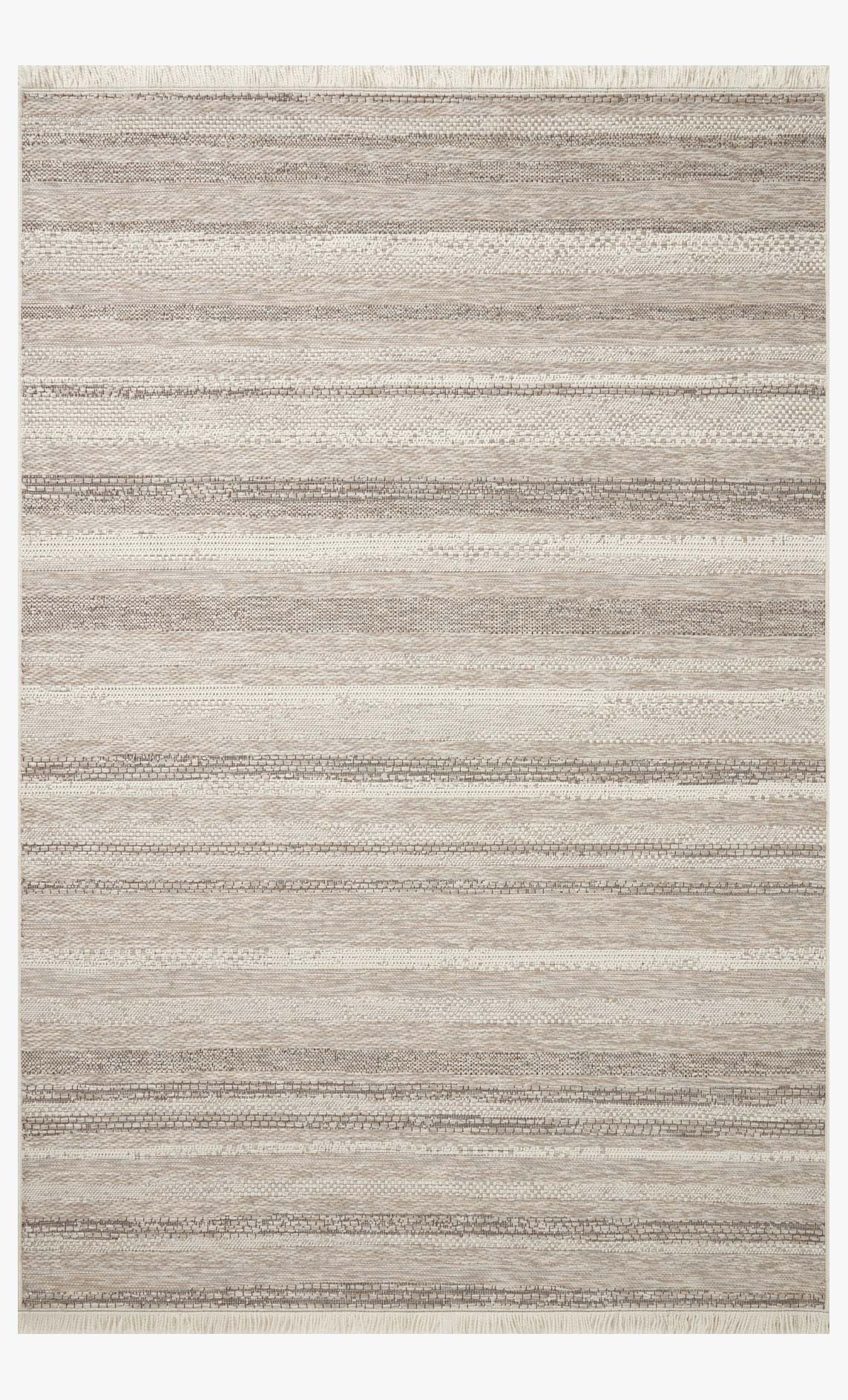 The Malibu Collection is an indoor/outdoor area rug by Amber Lewis x Loloi that channels the casual modern vibe of the beach city it's named after. The rug's neutral-toned geometric prints are easy to match with a range of decor styles, while a hint of fringe adds to the breezy aesthetic. This collection is power-loomed of 100% polypropylene that's made to resemble natural fibers, but which can withstand the outdoor elements and indoor high-traffic areas like mudrooms, playrooms, and hallways. Spot clean, vacuum, or hose off completely as needed. Made in Egypt and OEKO-TEX certified, ensuring its materials don't contain harmful substances.