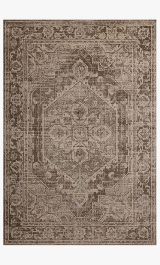 The Mona Collection by Magnolia Home by Joanna Gaines x Loloi is a power-loomed area rug with a framed design featuring traditional motifs and medallions in muted palettes. This collection is made of easy-to-care-for polypropylene and polyester in Egypt and OEKO-TEX certified, ensuring its materials don't contain harmful substances.