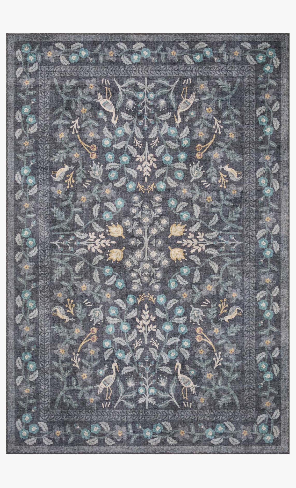 The Rifle Paper Co. x Loloi Maison Collection introduces a fresh take on the collaboration's signature whimsical style. With a fanciful bird here and a twirling vine there, this power-loomed rug collection is low pile and never sheds, bringing joy and delight to even the most heavily trafficked rooms.