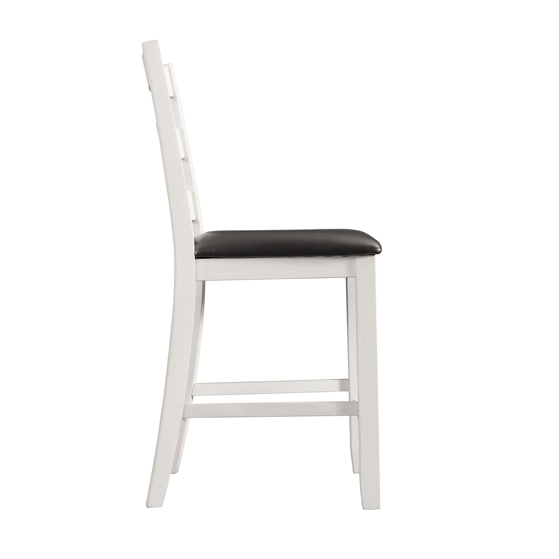 Bring refined style and warm design to your dining area with the Martin Counter dining collection. Constructed of wood solids and veneers with a contrasting sultry black and white finish, this set offers tapered legs, ladder back wooden chairs, and upholstered PU black cushion seats. Clean-lined, comfortable cushions add the finishing touch to this charming collection.