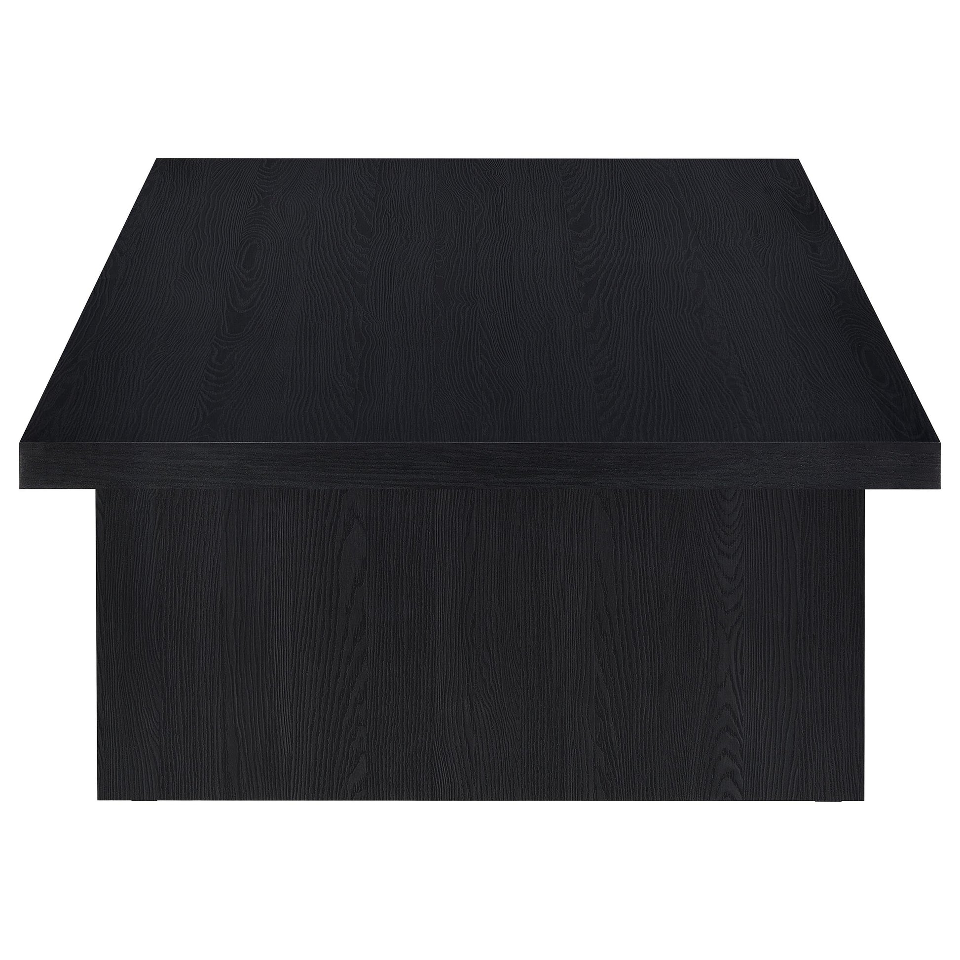 This contemporary coffee table establishes a strong visual focal point in any living room. Its streamlined silhouette, rectangular shape, and refined black finish enhance modern minimalism. Crafted with an engineered wood core and protected by scratch-resistant and eco-friendly laminate veneer, this center table functions as a versatile accent table or low table, perfectly complementing a cocktail party setting or blending seamlessly with minimalist décor.