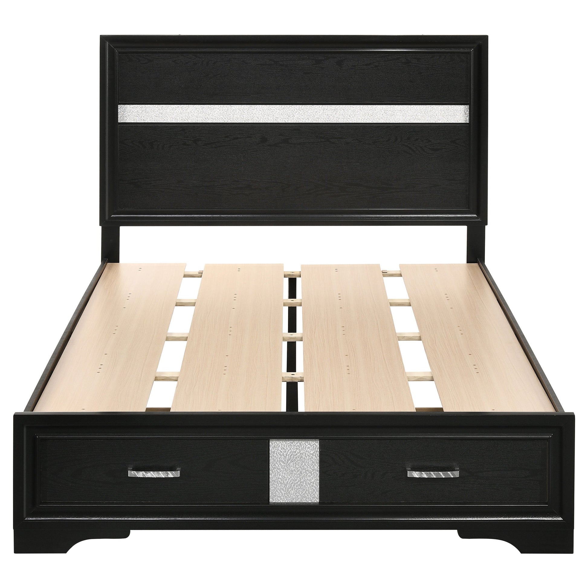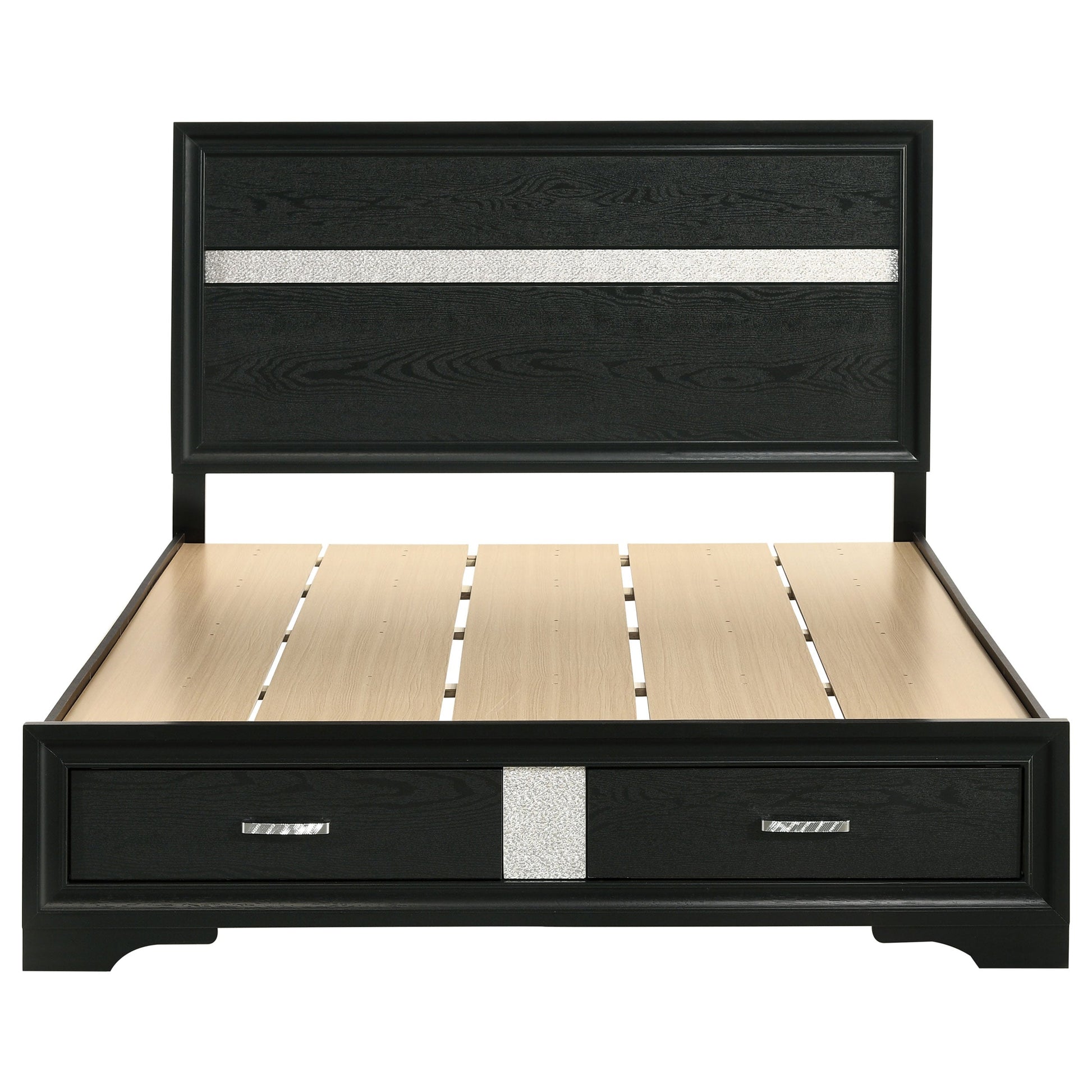This alluring bed from the Miranda collection has both fashion and function. It features crisp lines and a headboard that's as simple as it is impressive. The footboard is built with two roomy drawers to hold extra sheets and blankets. The bed has an effortless timelessness and elegance. Add to the bedroom for a charming ambiance that's sure to please.