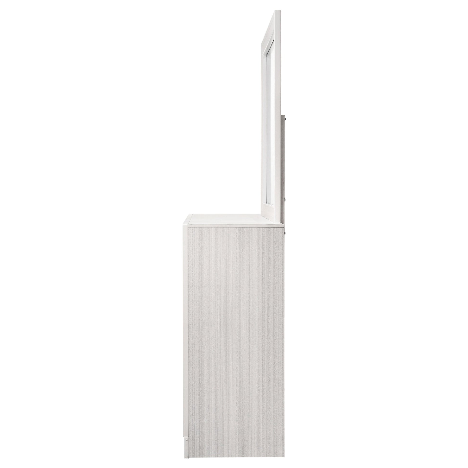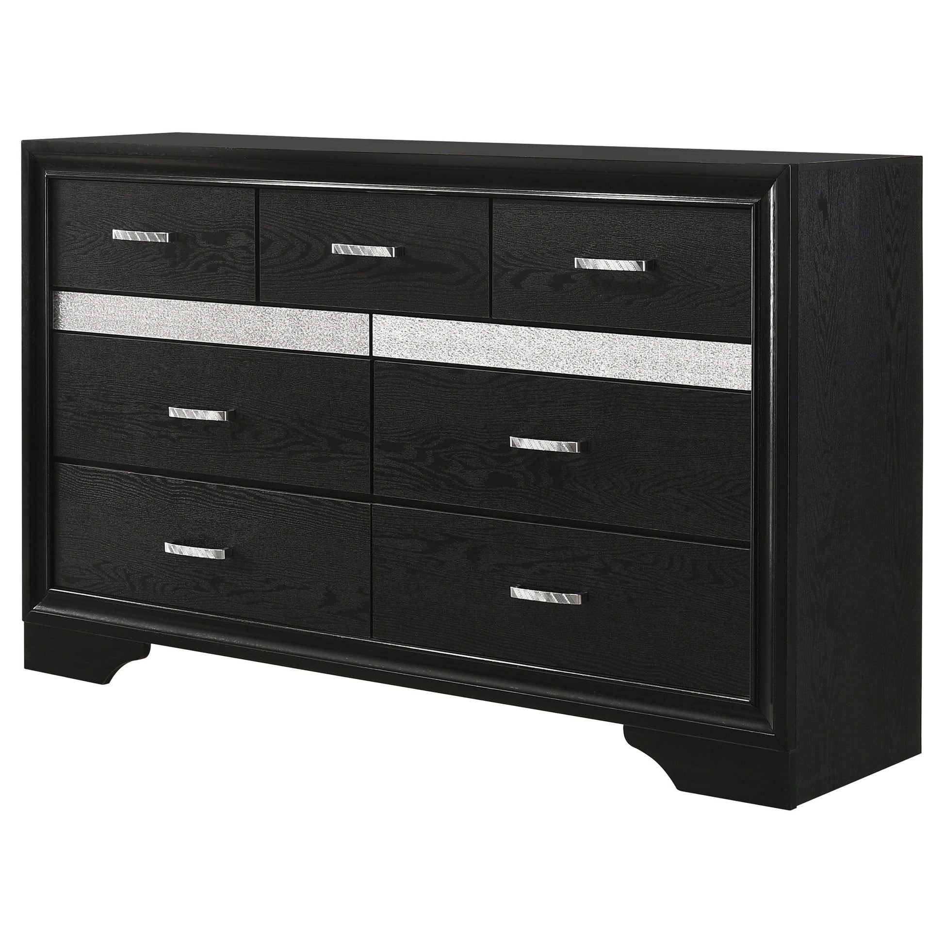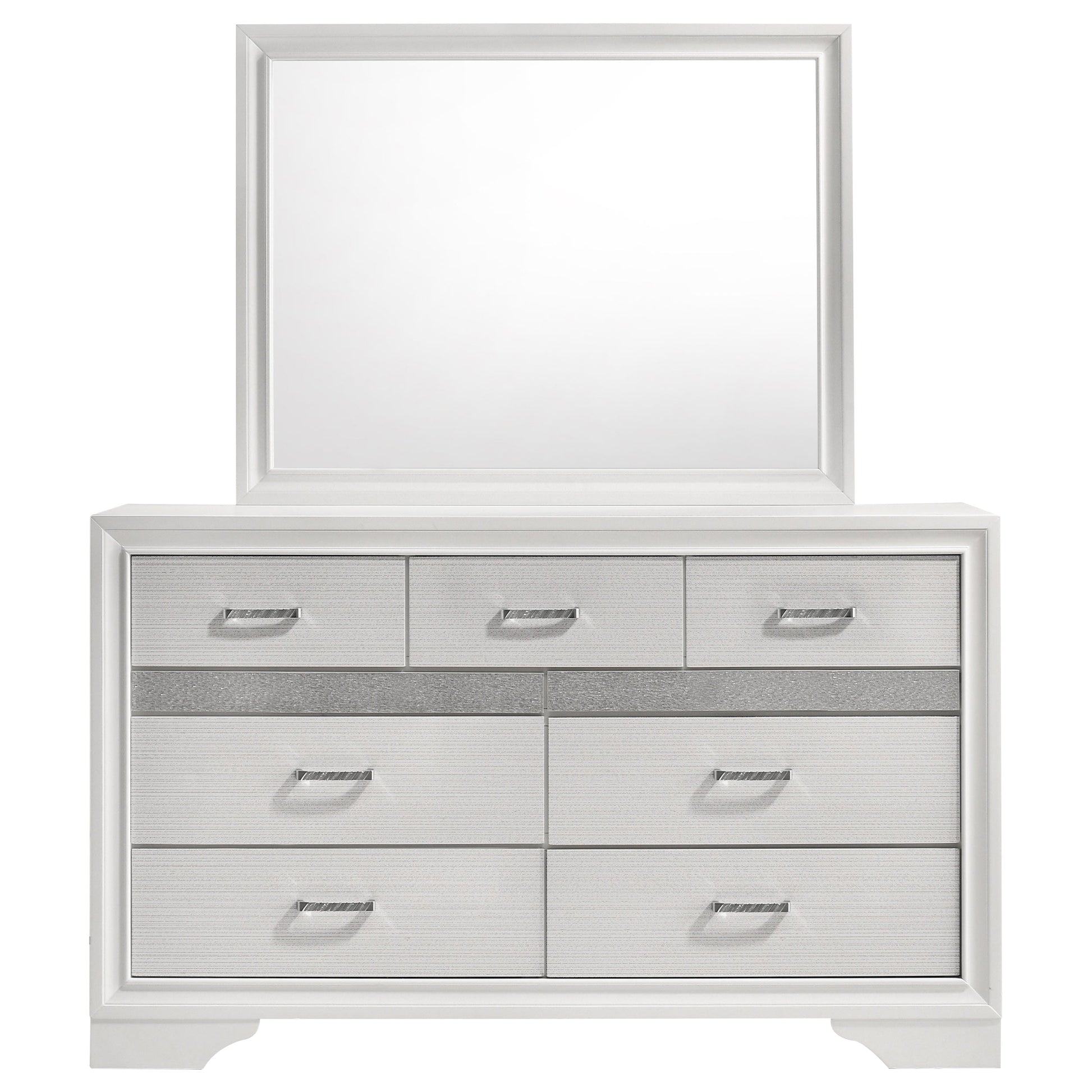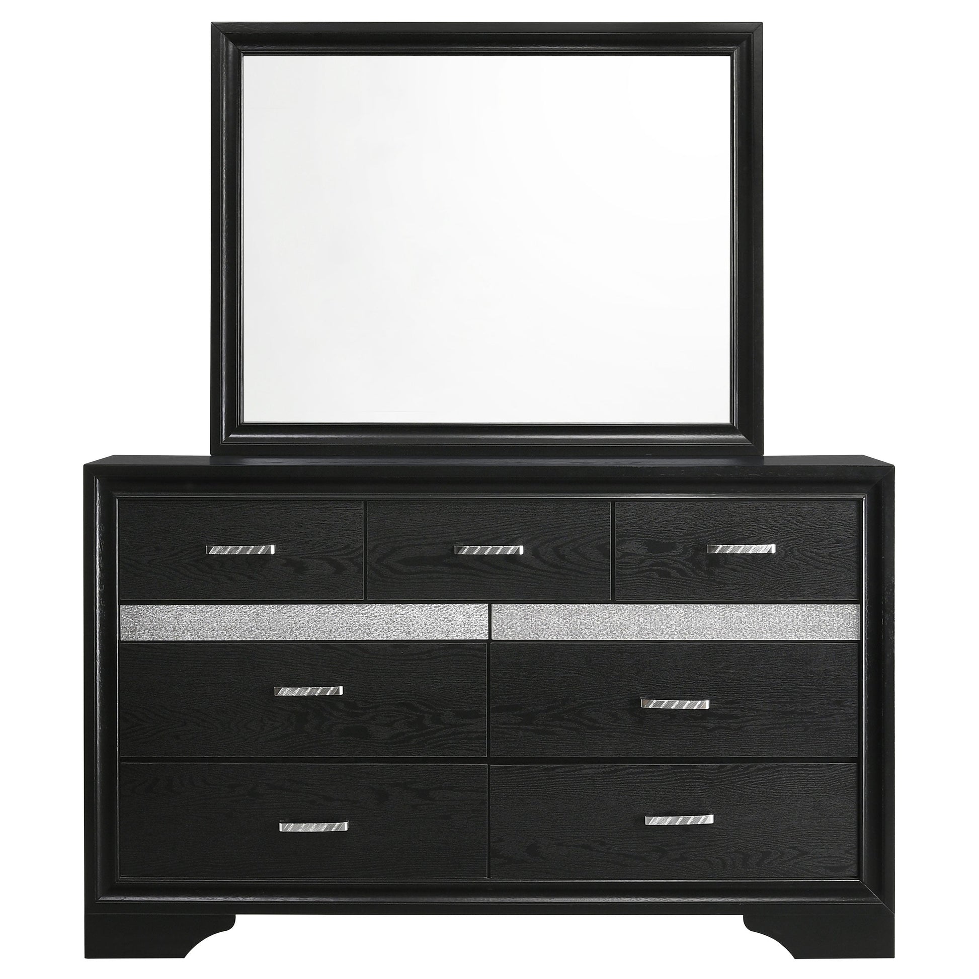 Infuse your space with sophisticated grace. The chic design of this beautiful dresser lends a touch of elegance to any bedroom. Felt-lined drawers keep delicate belongings safe and secure. A hidden jewelry drawer offers a discreet place to store your valuables. Complete with a glittery panel across the front, this piece exudes sparkling opulence.