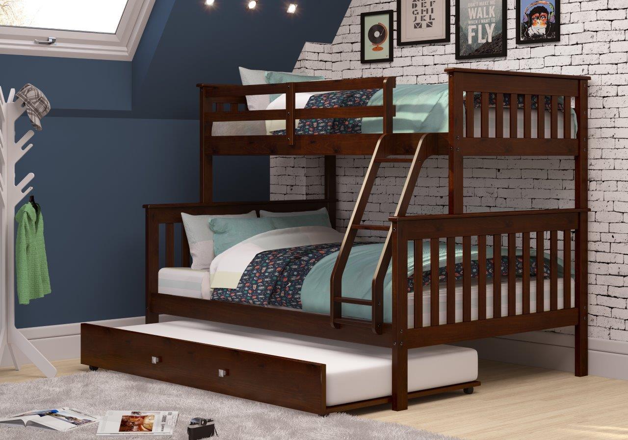 With a sturdy construction and espresso finish, this stately piece is great for any child’s room. The attached ladder gives you easy access to the top bunk. Our mattress ready slat system is already incorporated, eliminating the need for box springs.