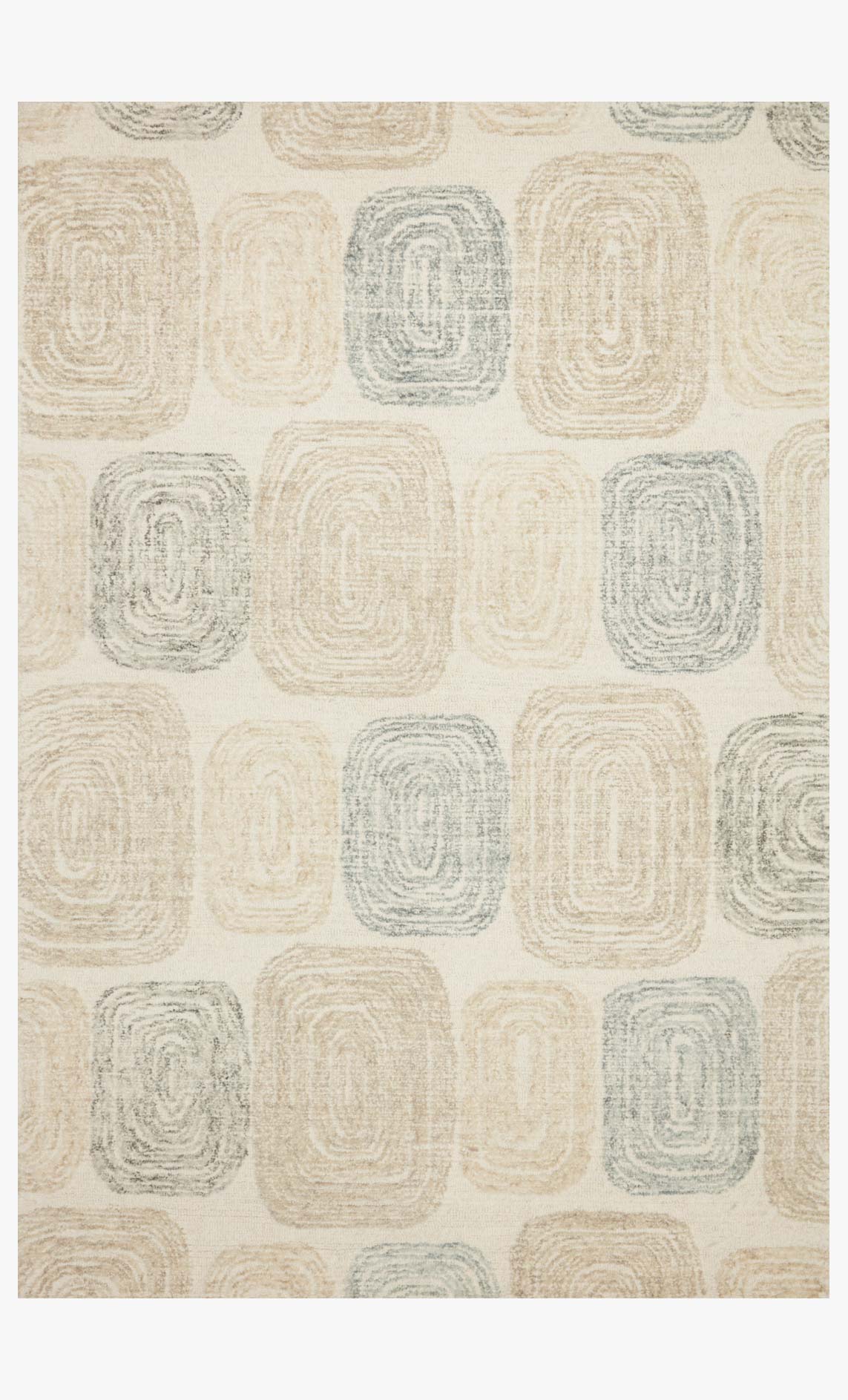 GeGeometric designs softened by a tonal color palette; the Milo Collection is hand-tufted of 100% wool pile by artisans in India. Playful and dreamlike, Milo is an eye-catching focal point.