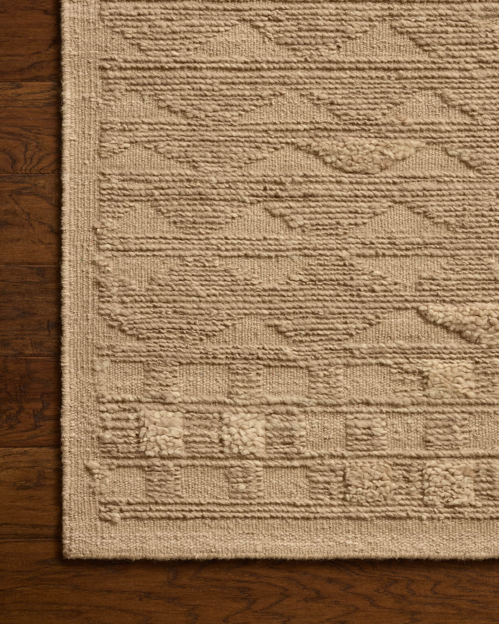 The Mallory Collection is a hand-woven wool area rug with an elevated, multi-texture pile that brings its geometric design to life. The rugs pile features a flatweave base, soumak weave center, and fluffy, high-cut pile for the pattern. An earthy, neutral palette makes it easy to style in living rooms, bedrooms, and more. Mallory is made of wool in India and GoodWeave-certified, ensuring our commitment to ethical production and the support of weavers communities.