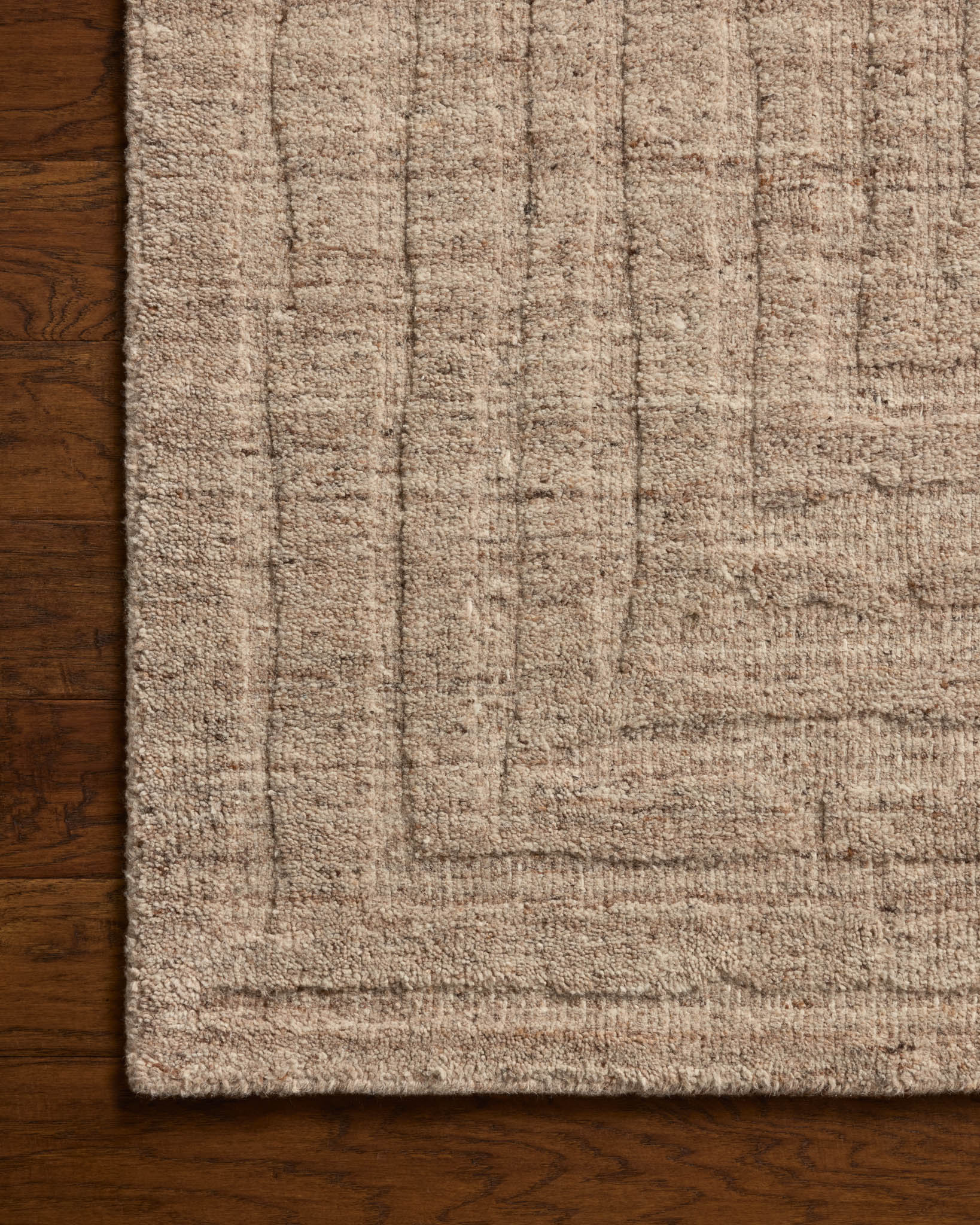 The Maren Collection is a unique handmade area rug made with a new technique that creates a dotted texture, almost like fine embroidery, but with a substantial hand-loomed feel. The pile reveals modern geometric patterns with organic shapes and natural softness, available in light, easygoing neutrals. Maren is hand-loomed of wool in India and GoodWeave-certified, ensuring our commitment to ethical production and the support of weavers communities.