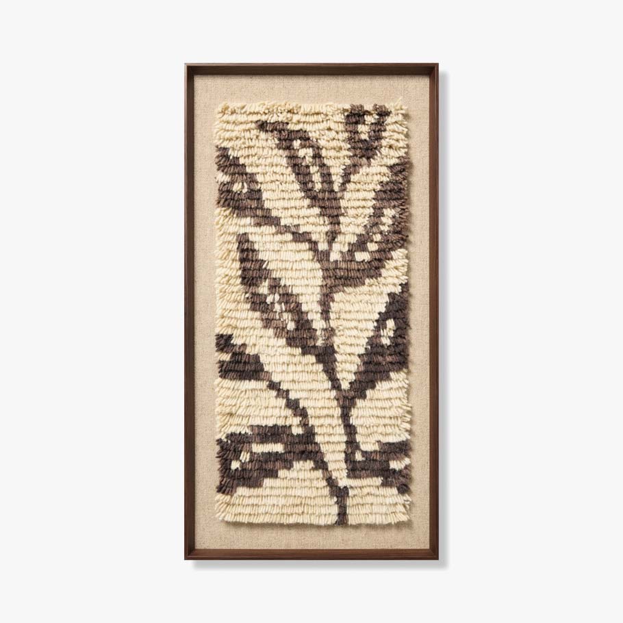 Nature's Unfurling is hand-tufted wall art with a neutral, black-and-ivory leaf design, a beautifully textural accent for bohemian or natural home decor. The vertical artwork is crafted in India from wool and custom-framed by Loloi in the USA, measuring 50" x 26".