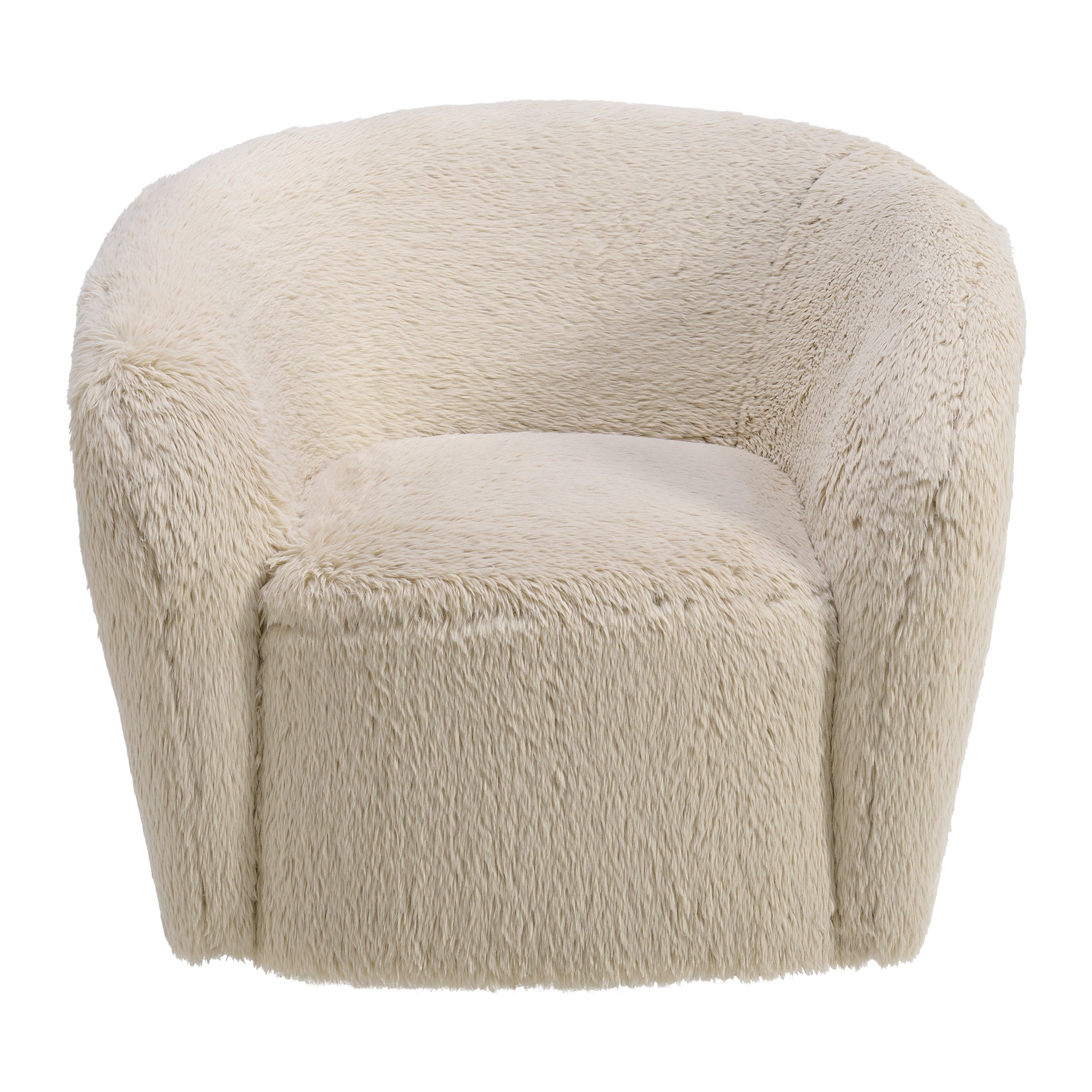 The Navajo Swivel Chair is the perfect combination of modern comfort and style. The chairÕs robust frame is constructed of quality solid and composite wood and is fully upholstered in soft and feathery polyester fabric, enveloping the comfortable and supportive foam cushioning. A rounded barrel silhouette channels coveted modern style, while a broad and sturdy swivel base allows 360 degrees motion. For a comfortable, durable, and stylish addition to your living space, the Navajo Swivel Chair is the ideal choice.