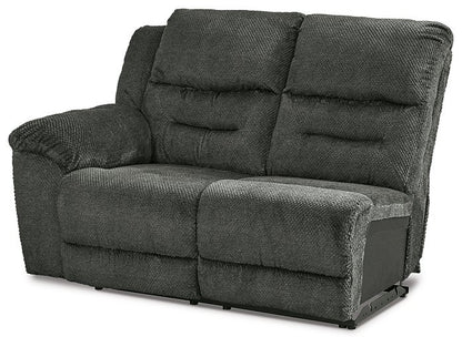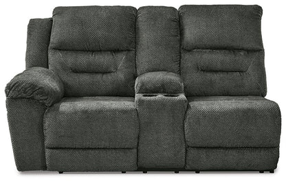 Positively plush fabric joins forces with one-touch power reclining to create this sectional. Its scale is impressive. And its style? Contemporary chic. Richly neutral upholstery keeps the look decidedly on trend. This sectional makes cozy comfort and a confidently curated aesthetic more accessible than ever.