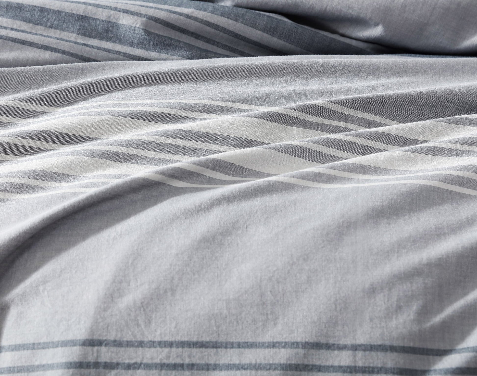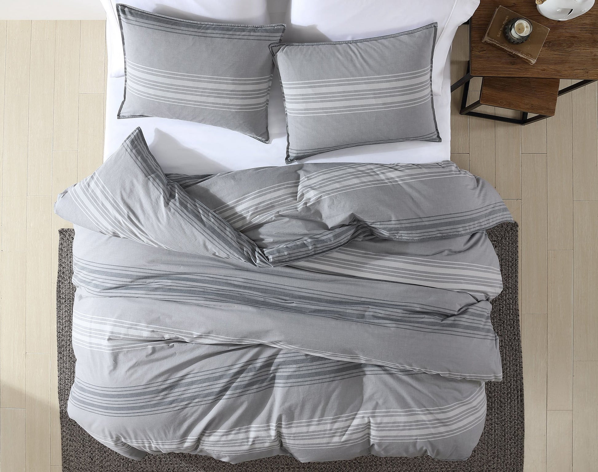 Elevate your bedroom with the Noah Charcoal Stripe 4 pc Comforter Set, featuring a sophisticated grey striped design that adds modern elegance to any space. Crafted for comfort and style, this set brings a cozy yet refined look, perfect for restful nights and stylish mornings. Transform your bed into a serene retreat with this versatile and inviting comforter set.