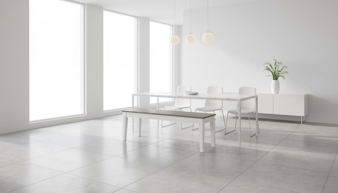 The Nollicott Dining Bench blends rustic warmth with clean, modern farmhouse charm. Its two-tone design features a crisp white painted base paired with a beautifully weathered wood-look seat, creating a stylish and inviting addition to any dining space. At 50 inches wide, it offers comfortable seating for multiple guests while maintaining a sturdy, classic silhouette.
