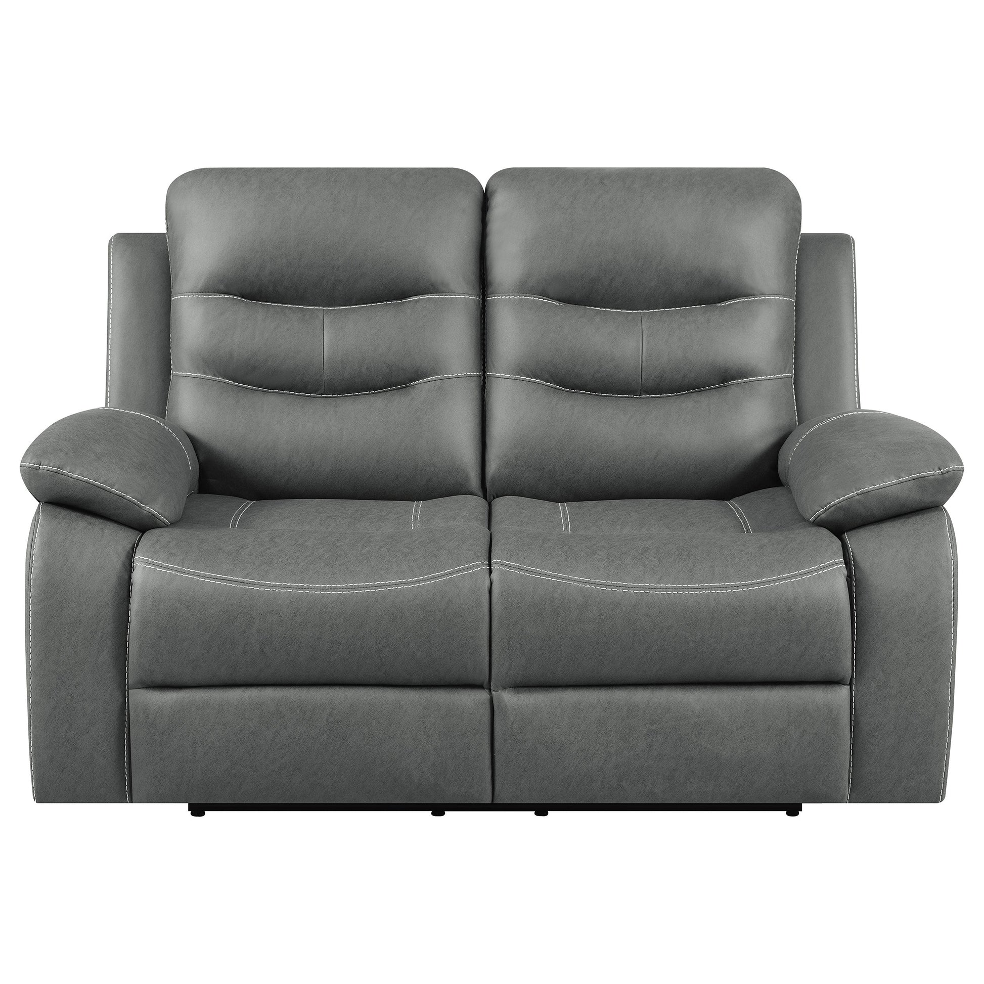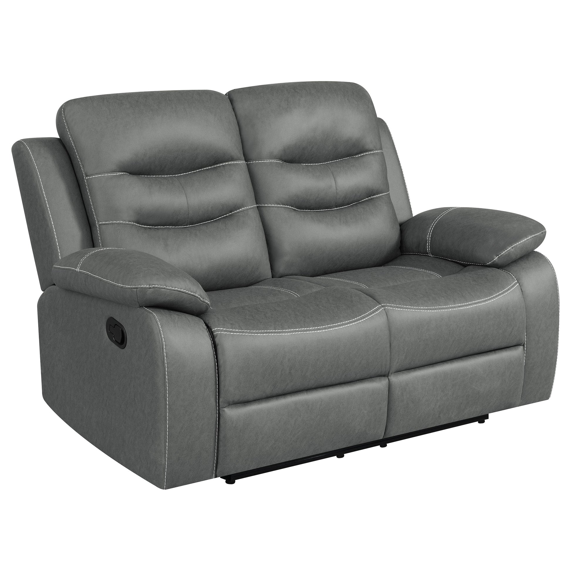 Ultra-cozy in both style and seating experience, the motion loveseat is ideal for a small gathering or solo relaxation. Pillowy polyester fiber padding in all the right places supports seating comfort and offers a design boost through tufting and layering. Cool dark grey microfiber upholstery is pleasing and contemporary in a wood-framed motion loveseat with pocket coil seating. Manual reclining creates customized positions for everything from socializing to napping. A wall-hugger design saves space, making this reclining loveseat a good choice for both large and compact spaces.
