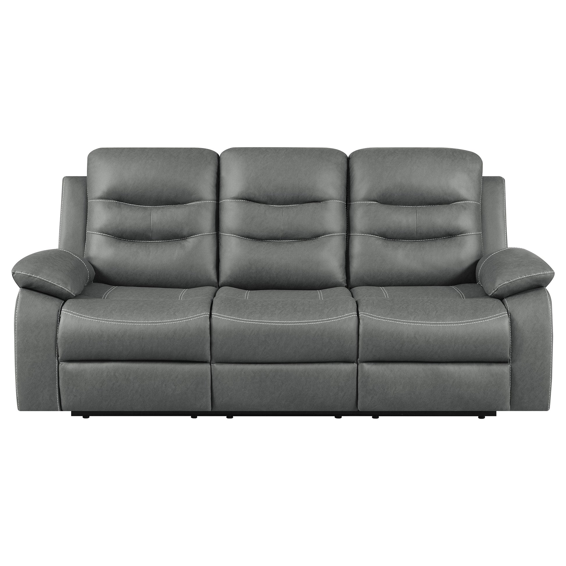 Ultra-cozy in both style and seating experience, the motion sofa is everything you need for a small gathering or solo relaxation. Pillowy polyester fiber padding in all the right places supports seating comfort and offers a design boost through tufting and layering. Cool dark grey microfiber upholstery is pleasing and contemporary in a wood-framed motion sofa with pocket coil seating. Manual reclining creates customized positions for everything from socializing to napping. A wall-hugger design saves space, making this reclining sofa a good choice for both large and compact spaces.