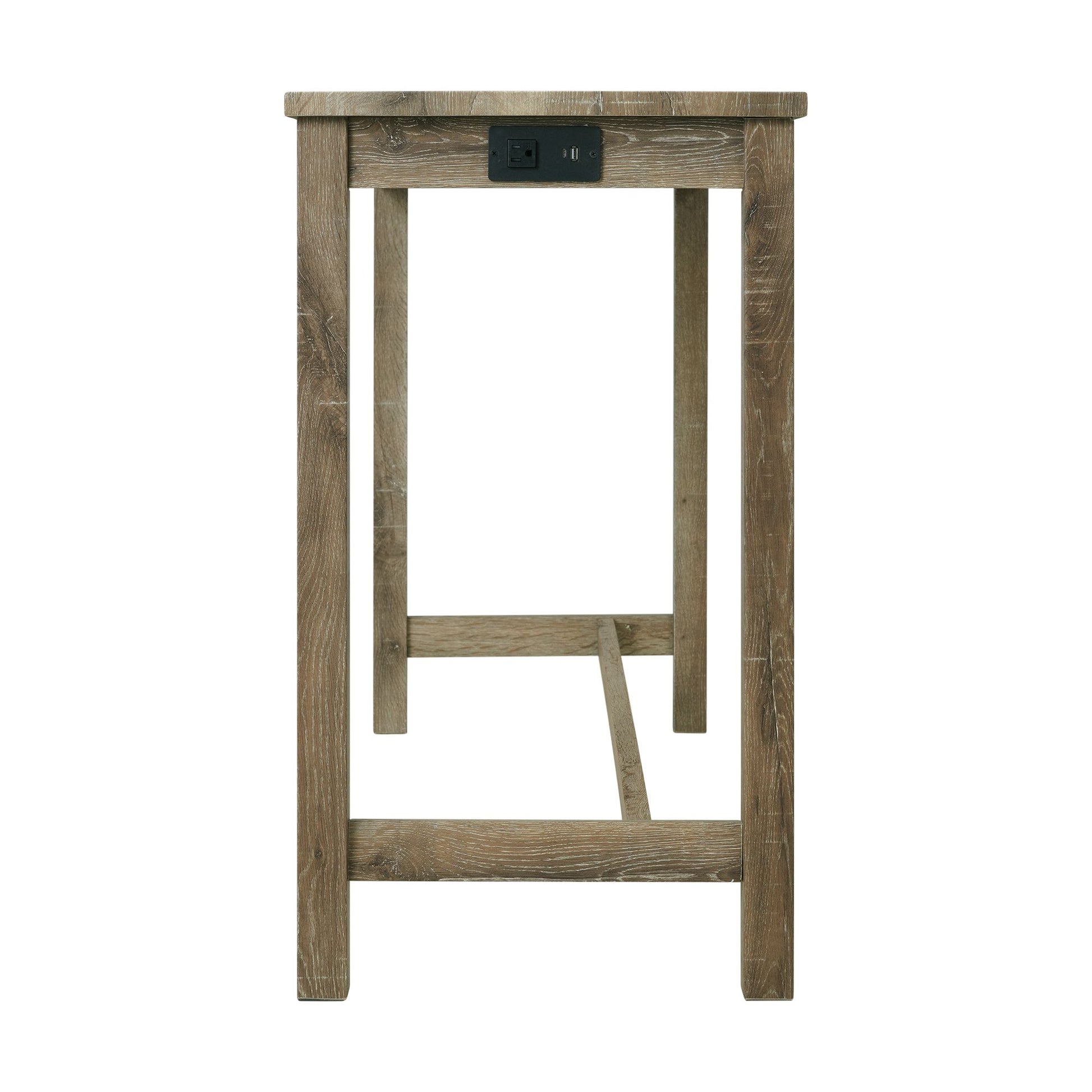 The Oak Lawn Multipurpose Bar Table Set is where functionality and style come together! This set includes a bar table and three stools. Easily display this set in the living room or a nook to finish up on some work, while you binge watch your favorite show. USB ports and a power strip allow you to keep your devices charged whether you're working or just scrolling through your favorite apps. The set has a 3D paper finish that features wood grain details throughout. The stools have a natural, upholstered seat that will keep you plenty comfy. Add this unique set to your home today for a look you'll love day after day!