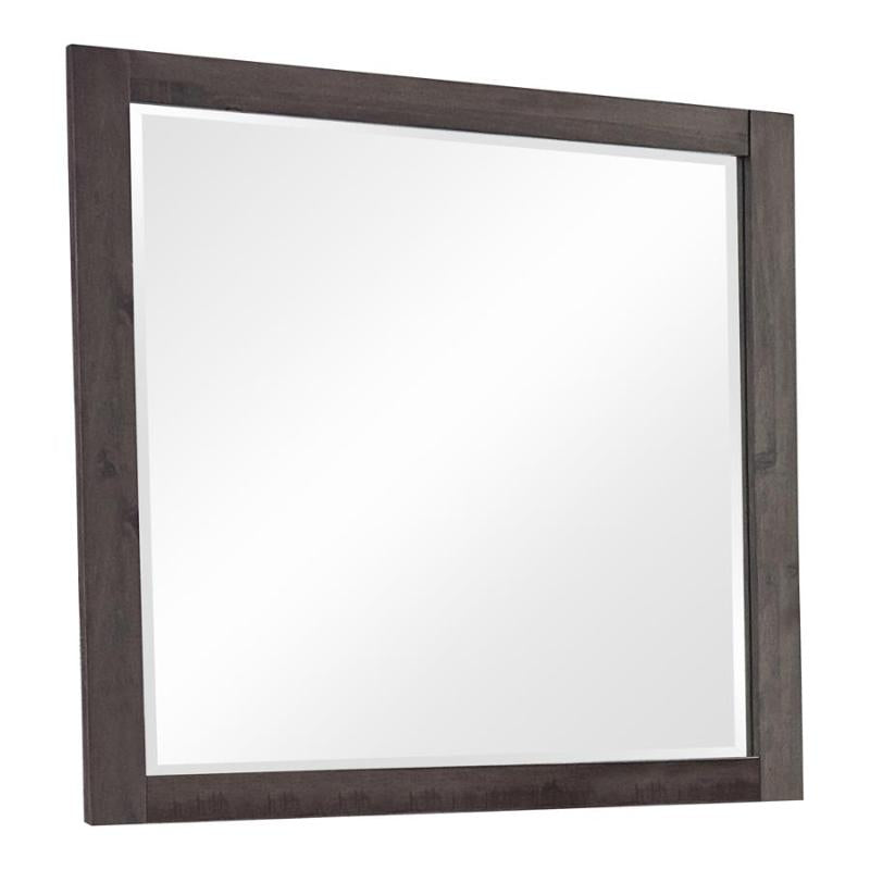 Complete your bedroom with the Oakridge Mirror from the Oakridge Collection by Coaster Furniture. Blending rustic charm with a modern silhouette, this mirror captures the warmth and character of natural wood while maintaining a clean, contemporary appeal. The rough-sawn warm grey finish highlights the natural grain and texture, creating an inviting yet refined look that complements a variety of bedroom styles.
