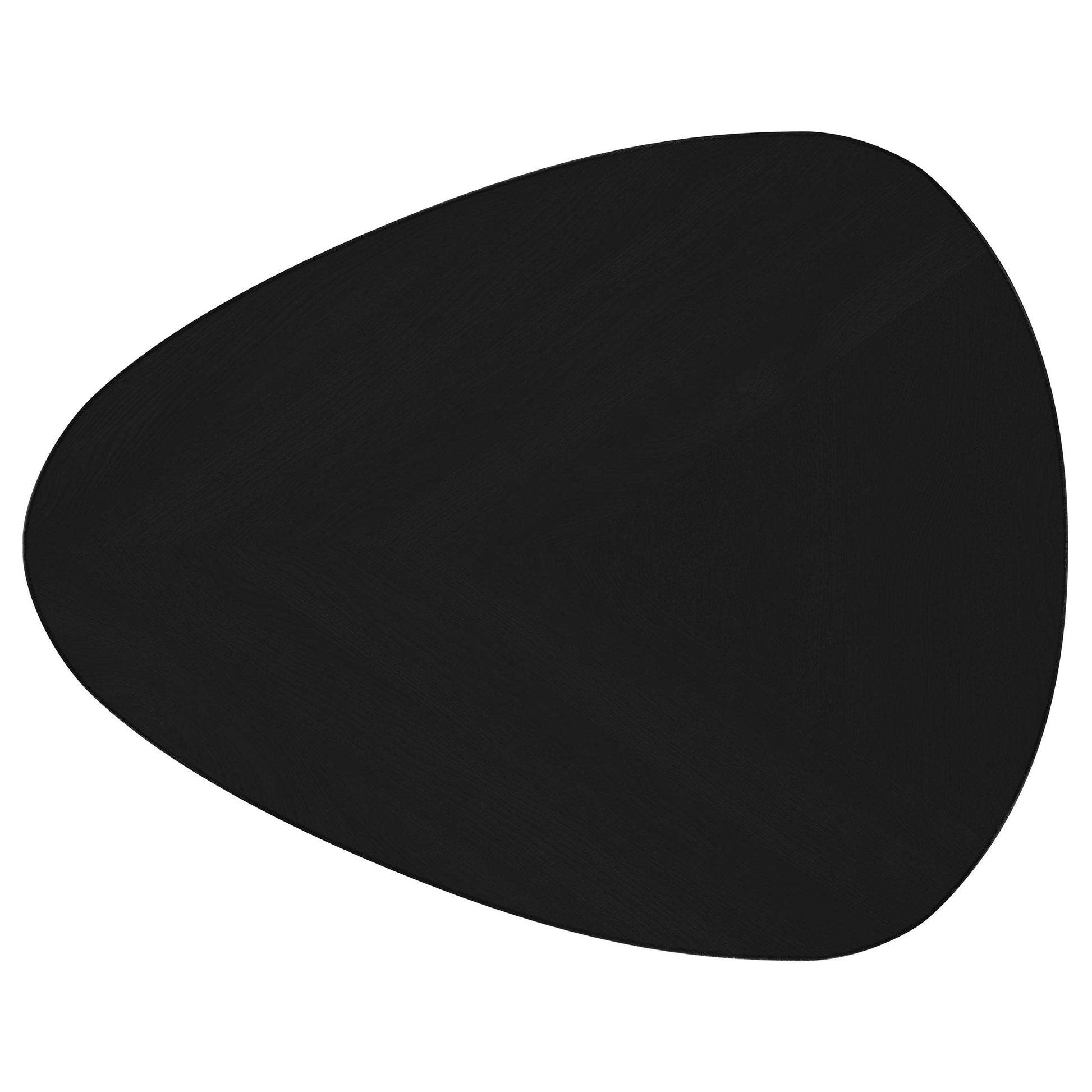 Elevate your living room with this sleek coffee table set, blending modern style with timeless craftsmanship. Handcrafted from solid mango wood, each table boasts a smooth black finish that emphasizes its triangular tabletop design with softly rounded corners. The splayed iron legs feature a black powder-coated finish, offering sturdy support with an airy aesthetic. Perfect for creating a cohesive and contemporary centerpiece, this occasional set combines durability and elegance effortlessly.