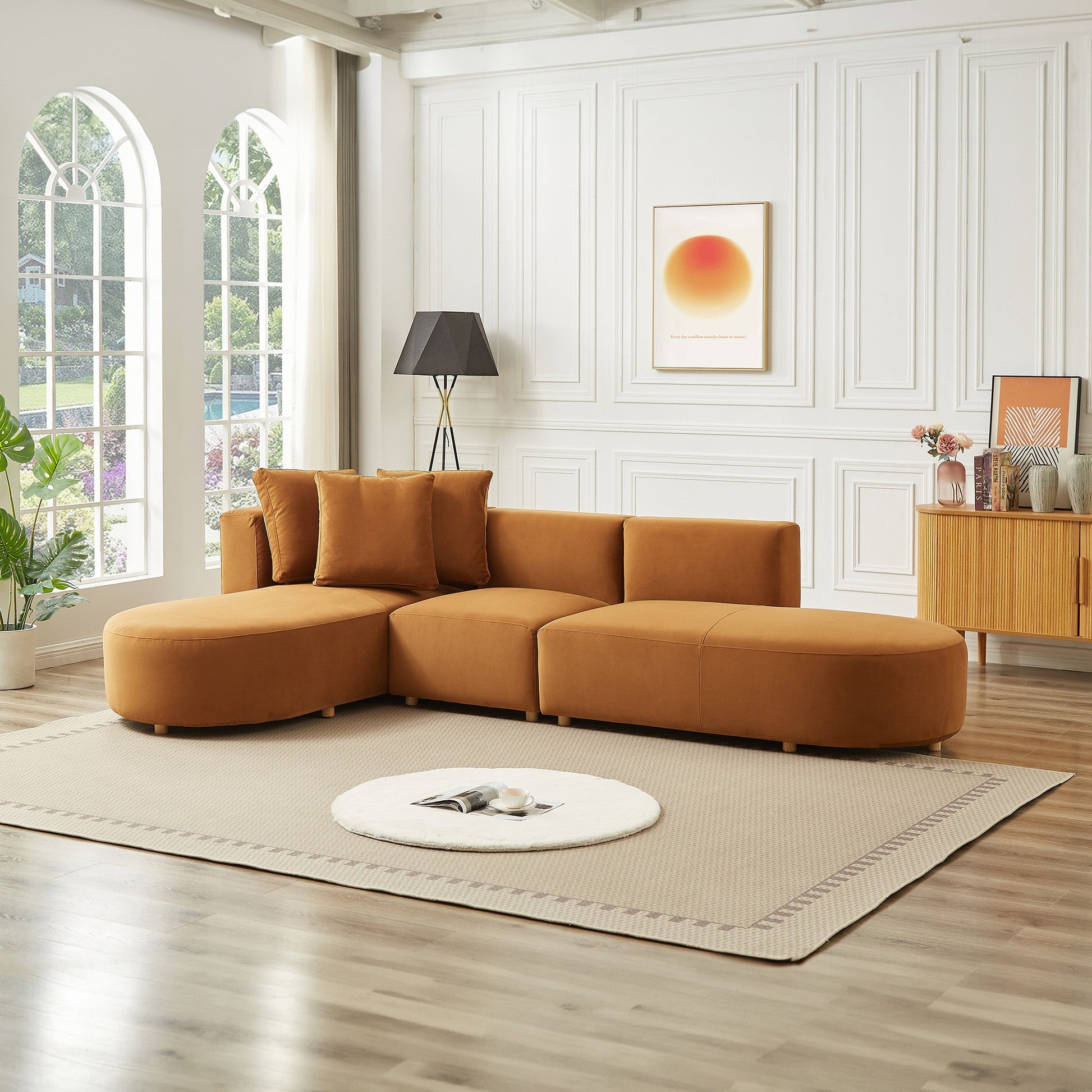 Introduce mid-century style to your living space with the sectional sofa. Enjoy the supreme comfort of high-density foam padding on the seat, armrests, and back. Perfect for relaxation and optimizing smaller spaces. Impeccably chic. Sleek design anchors any aesthetic, from traditional to mid-century modern. Embrace vintage flair and modern living with the light, fresh design, tapered legs, and luxurious velvet upholstery. Complete your living room decor with these stylish seating options. Crafted with a solid wood base.