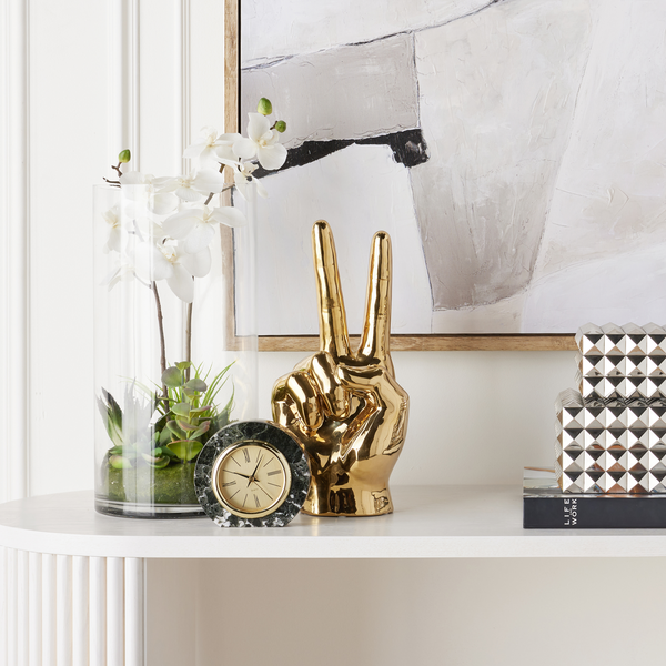 Crafted of ceramic with a metallic gold finish, this hand sculpture makes a stylish option for displaying jewelry (though we love it displayed on its own as well).