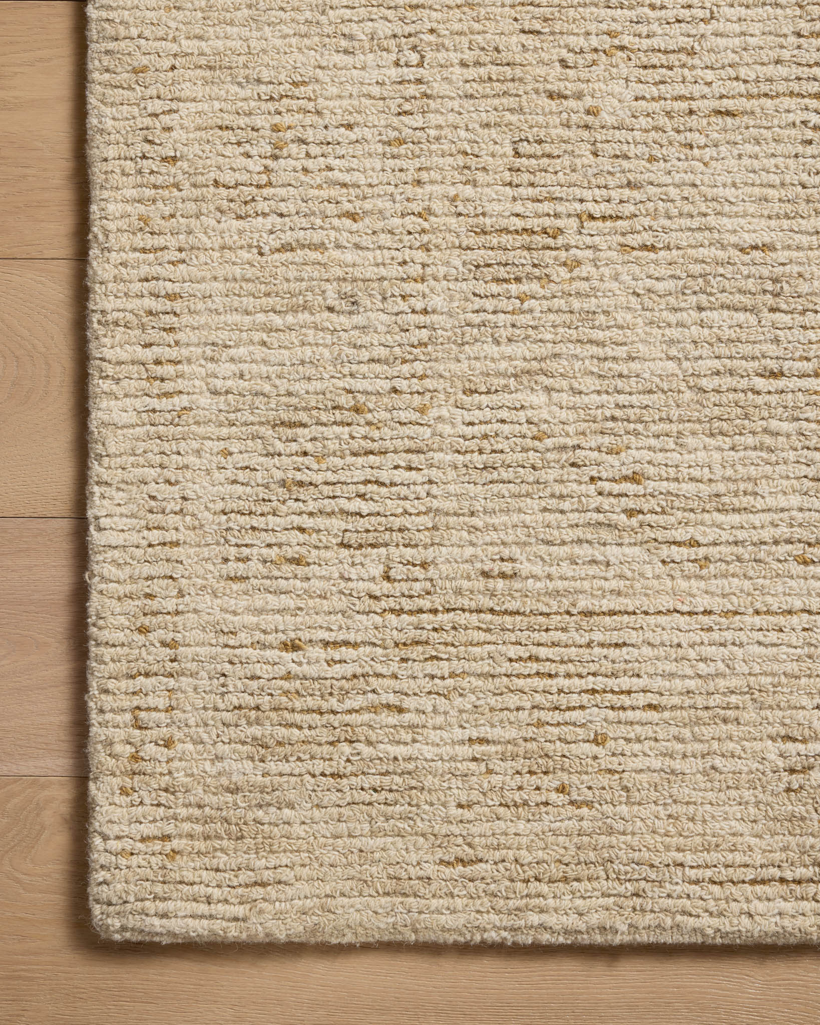The Penny Collection is a handmade wool area rug with a natural palette for living rooms, dining rooms, bedrooms, and more. The rug has a ribbed, high-low pile that reveals subdued motifs in the background base pile. This collection is hand-tufted of wool in India and is Goodweave-certified, ensuring our commitment to ethical production and the support of weaver communities.